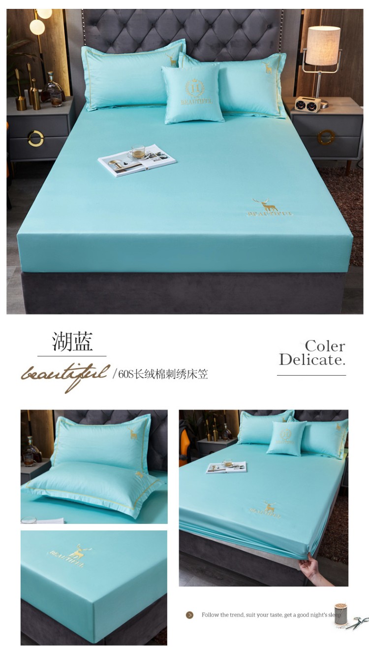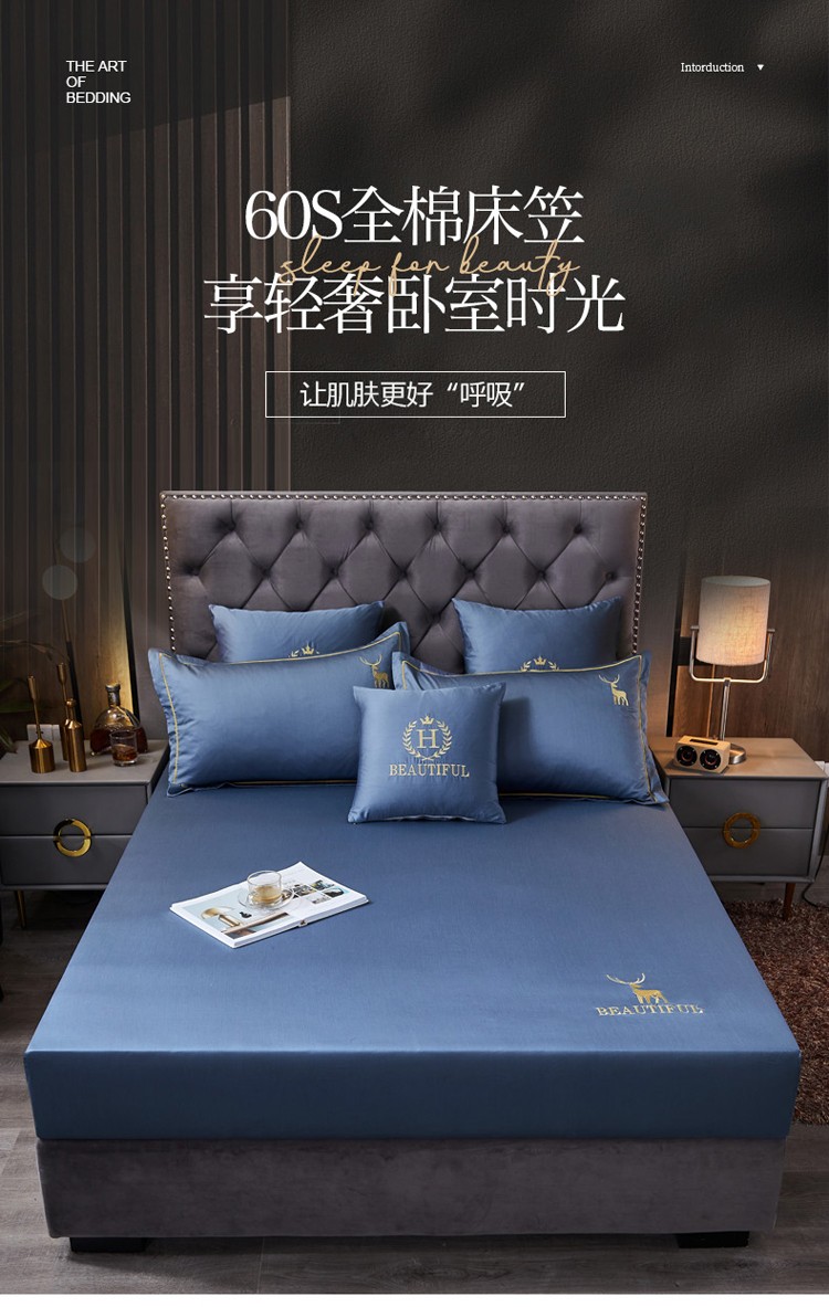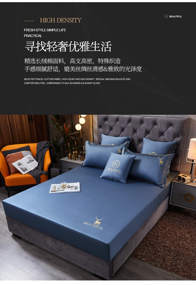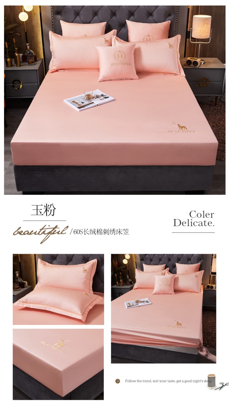 (总)菊上 2021新款60长绒棉-单品床笠(幸福鹿系列)