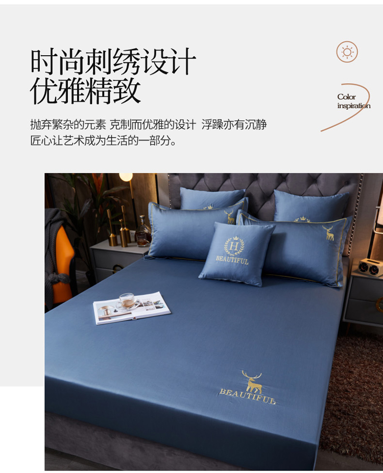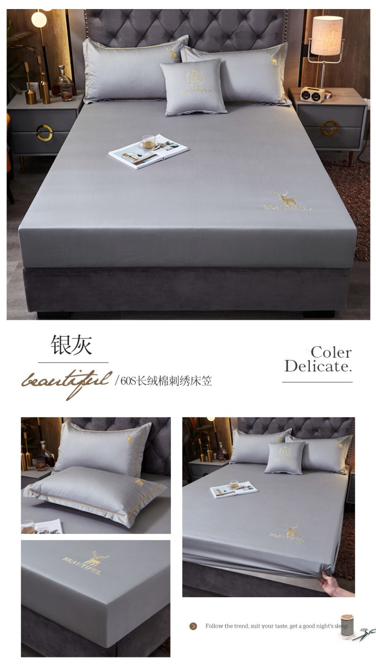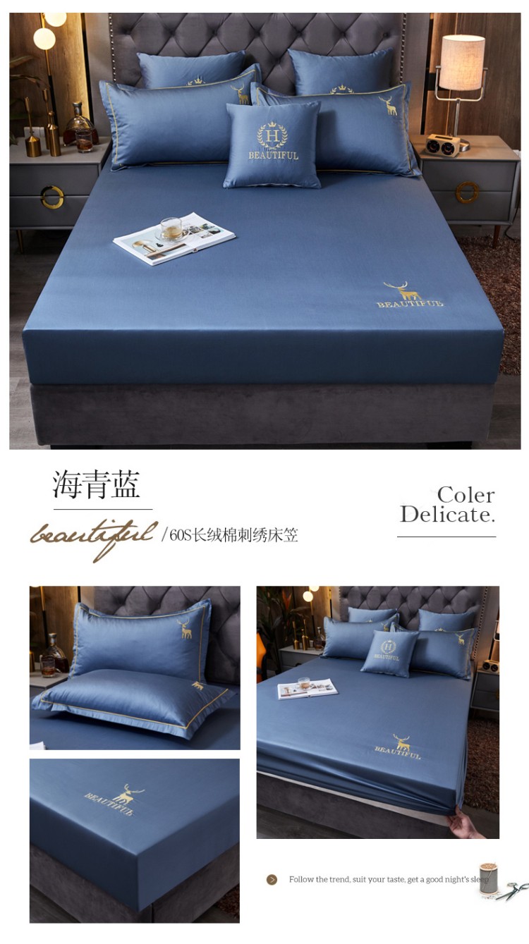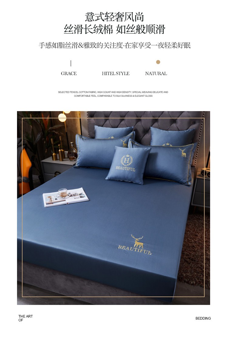 (总)菊上 2021新款60长绒棉-单品床笠(幸福鹿系列)