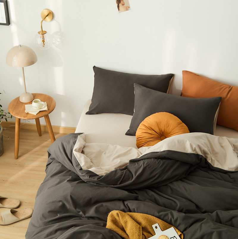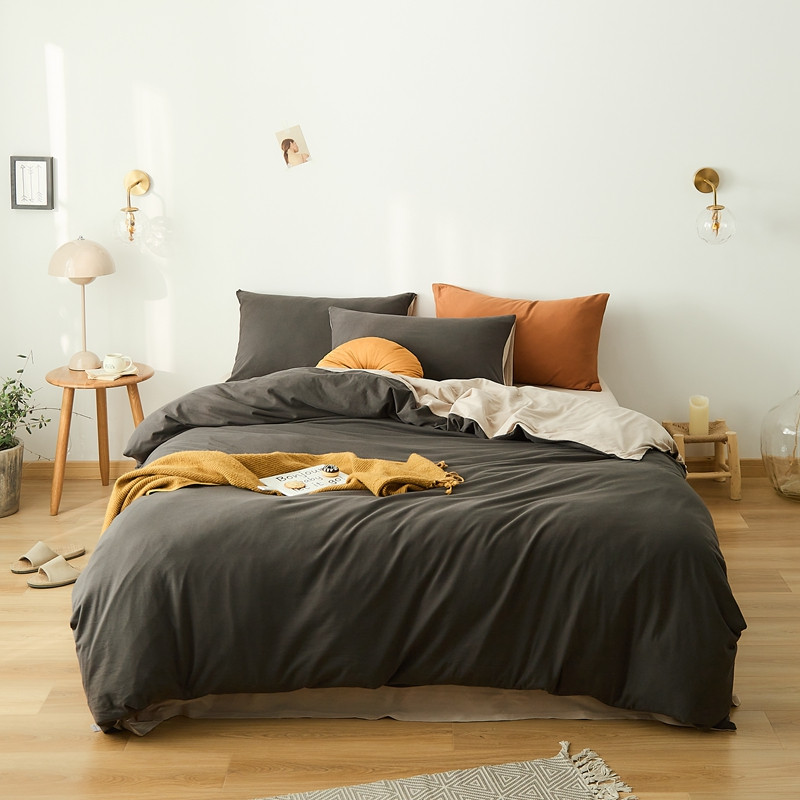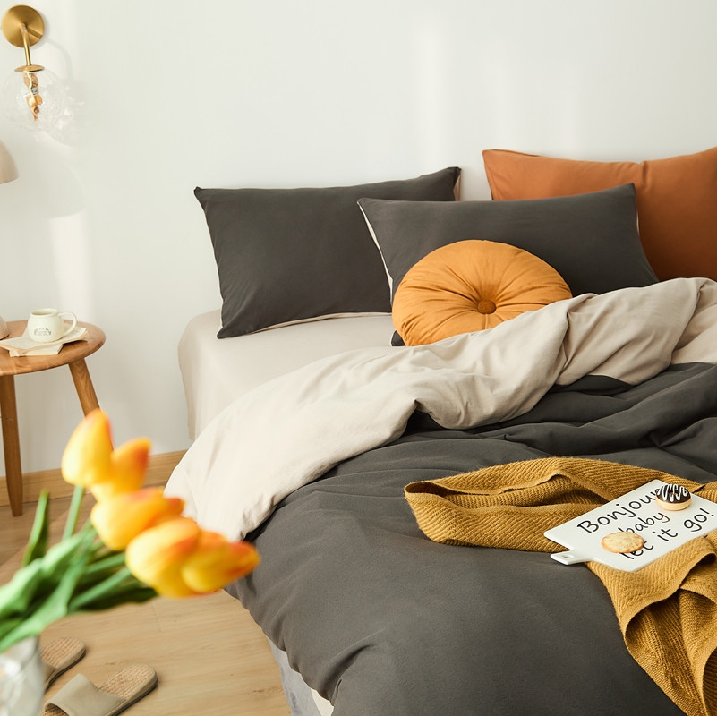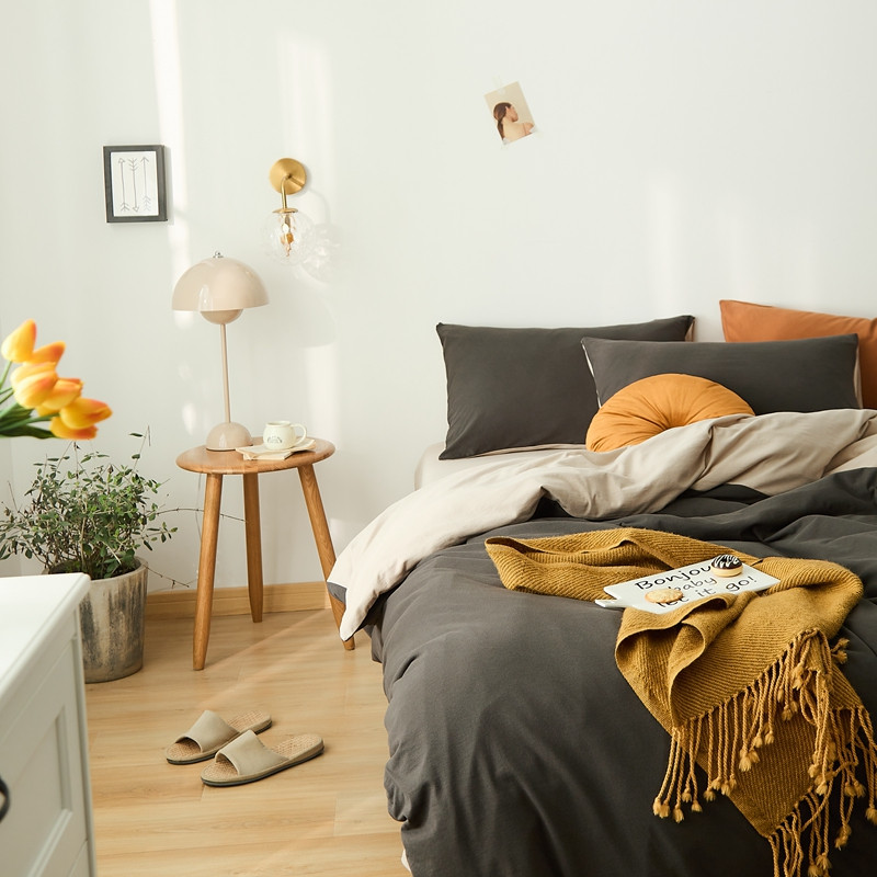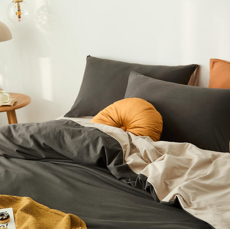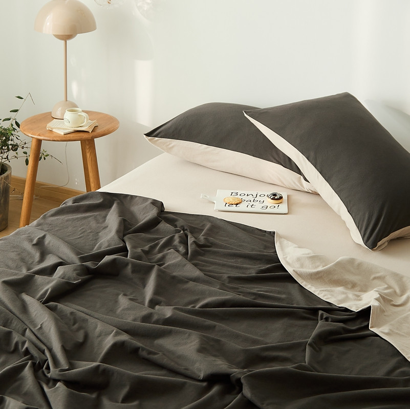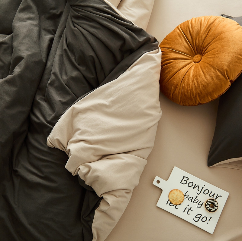 当前位置: 91家纺网 > 商品网购 > 床品套件 > 四件套 > 针织棉四件套 > 原研家居 2021新款全棉针织棉纯色系列四件套 碳灰米咖