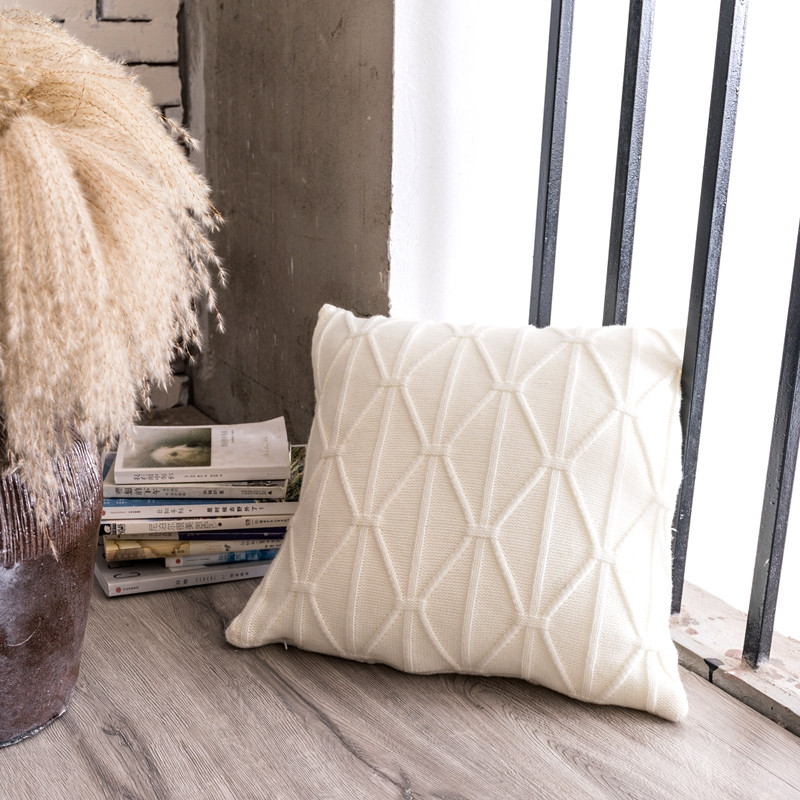 商品名称:918拾朵家居 2021新款米字结抱枕 白色