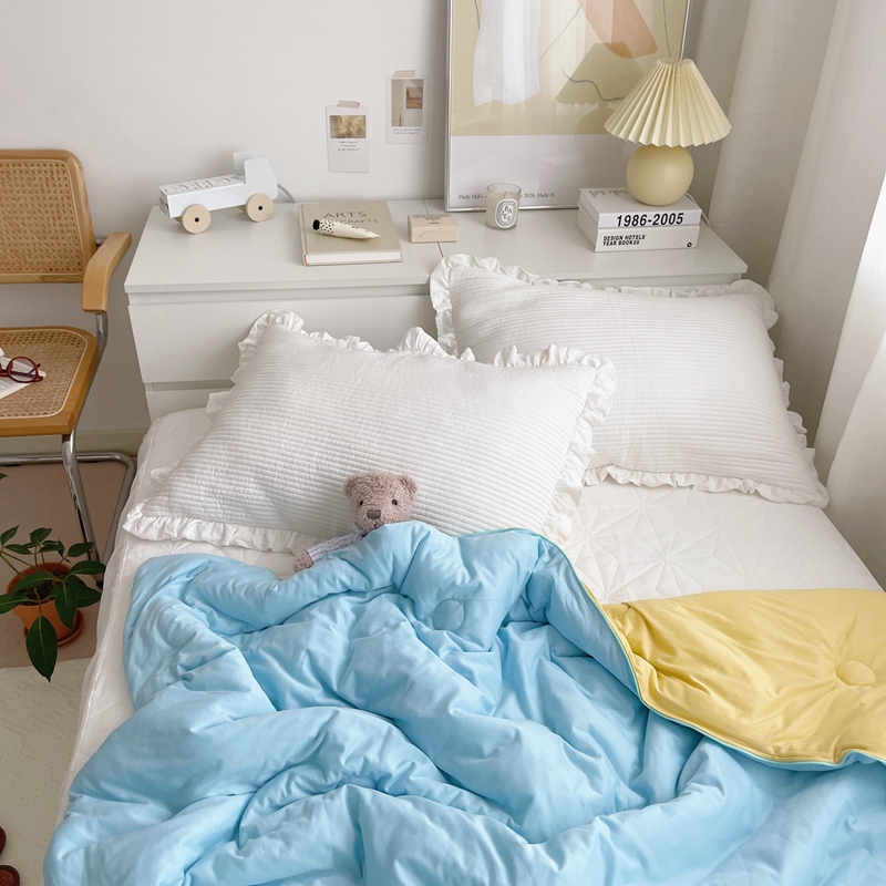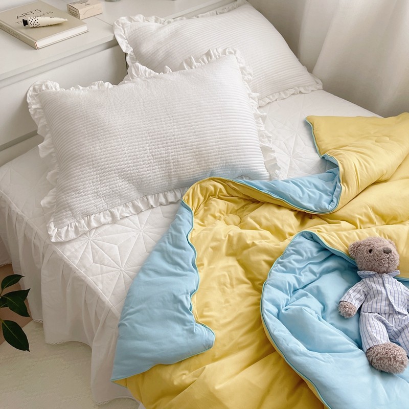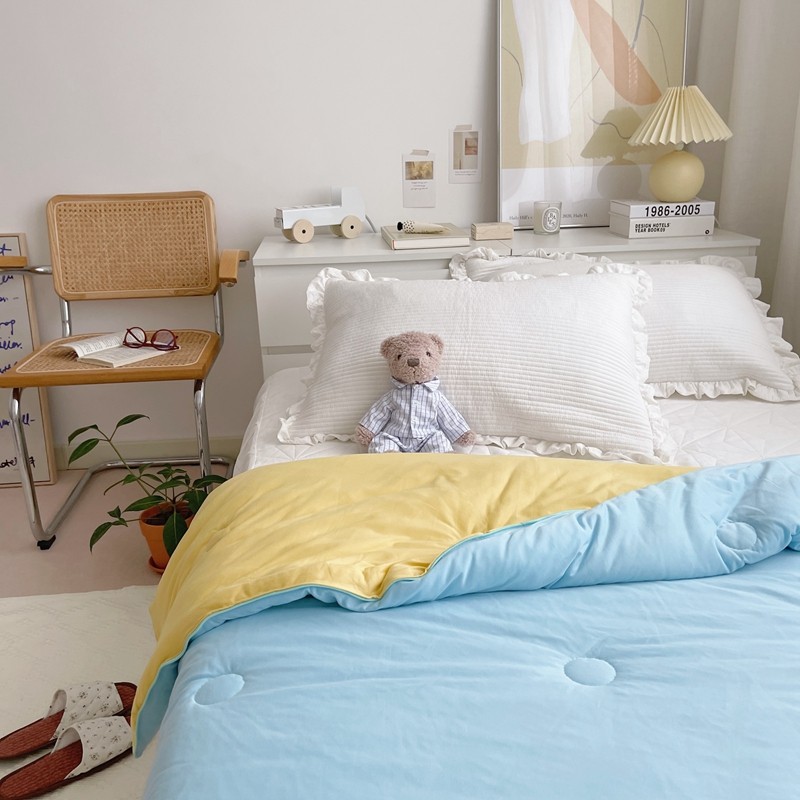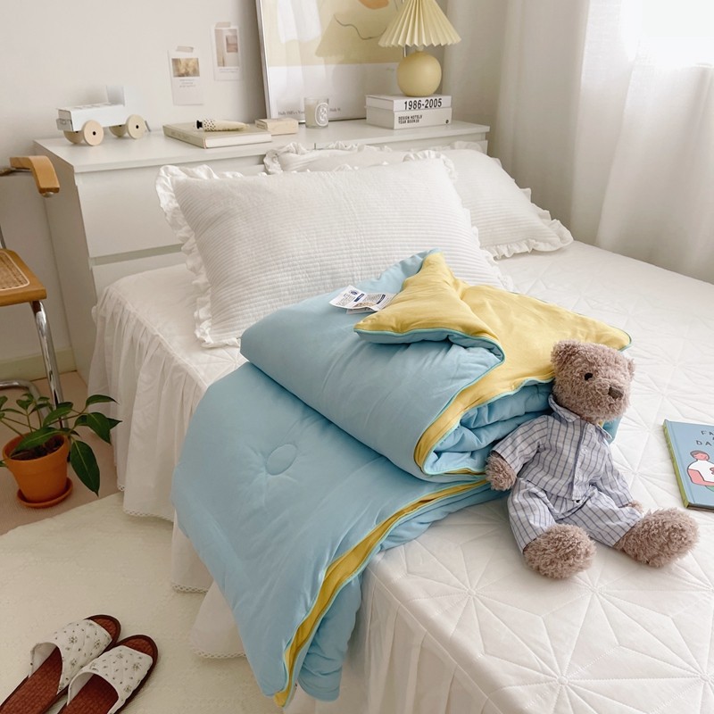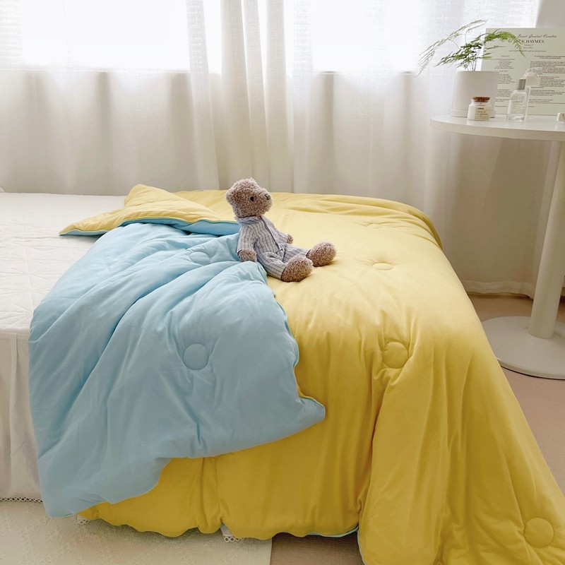 星期八 2021新款马卡龙大豆针织春秋被冬被 蓝黄