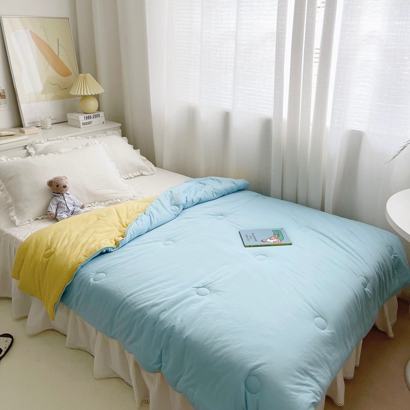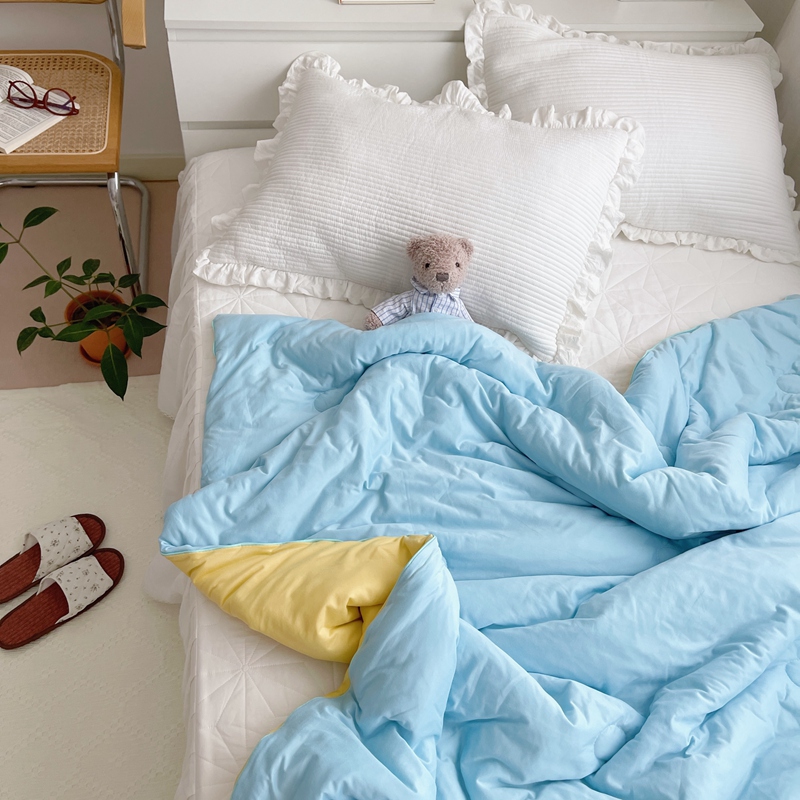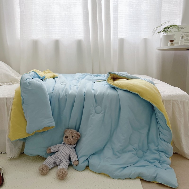 商品名称:星期八 2021新款马卡龙大豆针织春秋被冬被 蓝黄