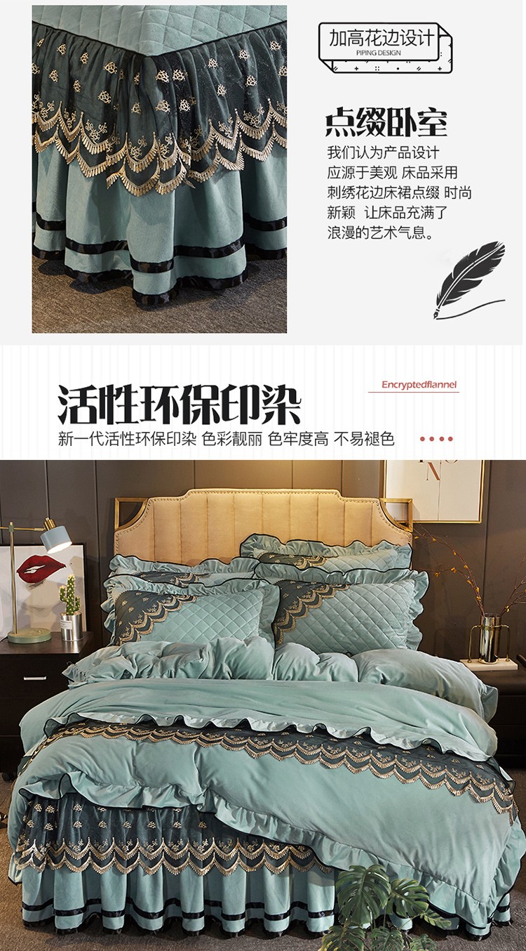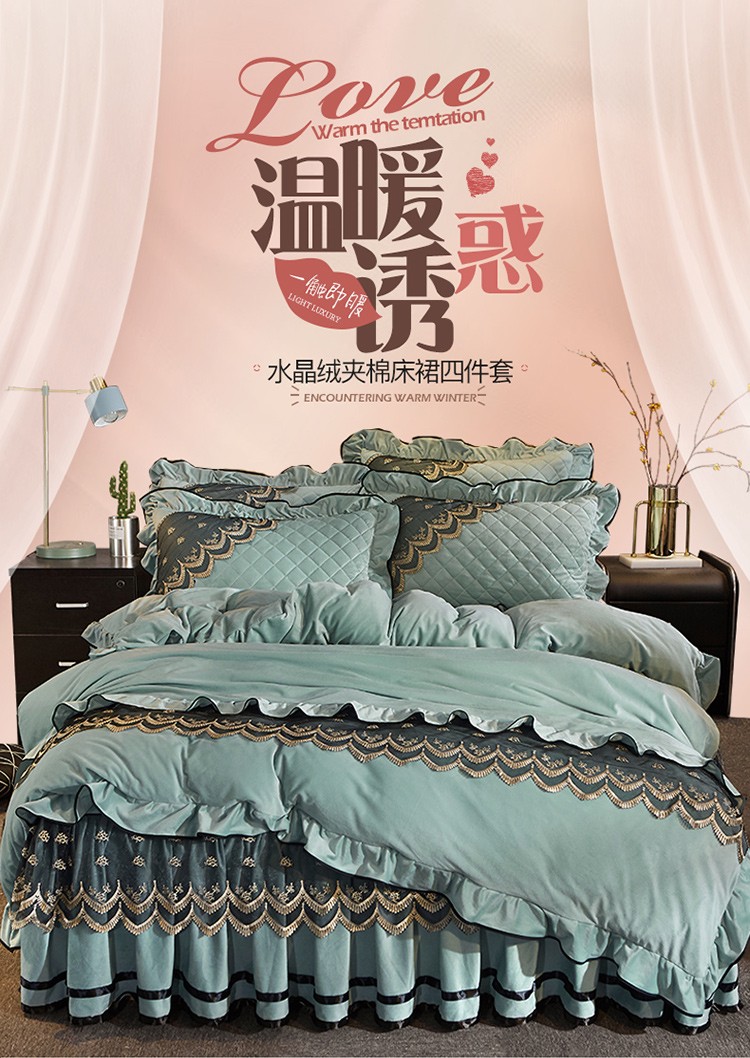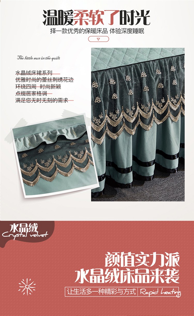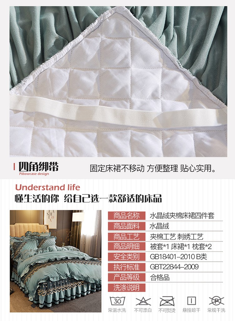 商品名称:网红馆 2025新款玲珑时尚水晶绒夹棉床裙四件套 豆绿