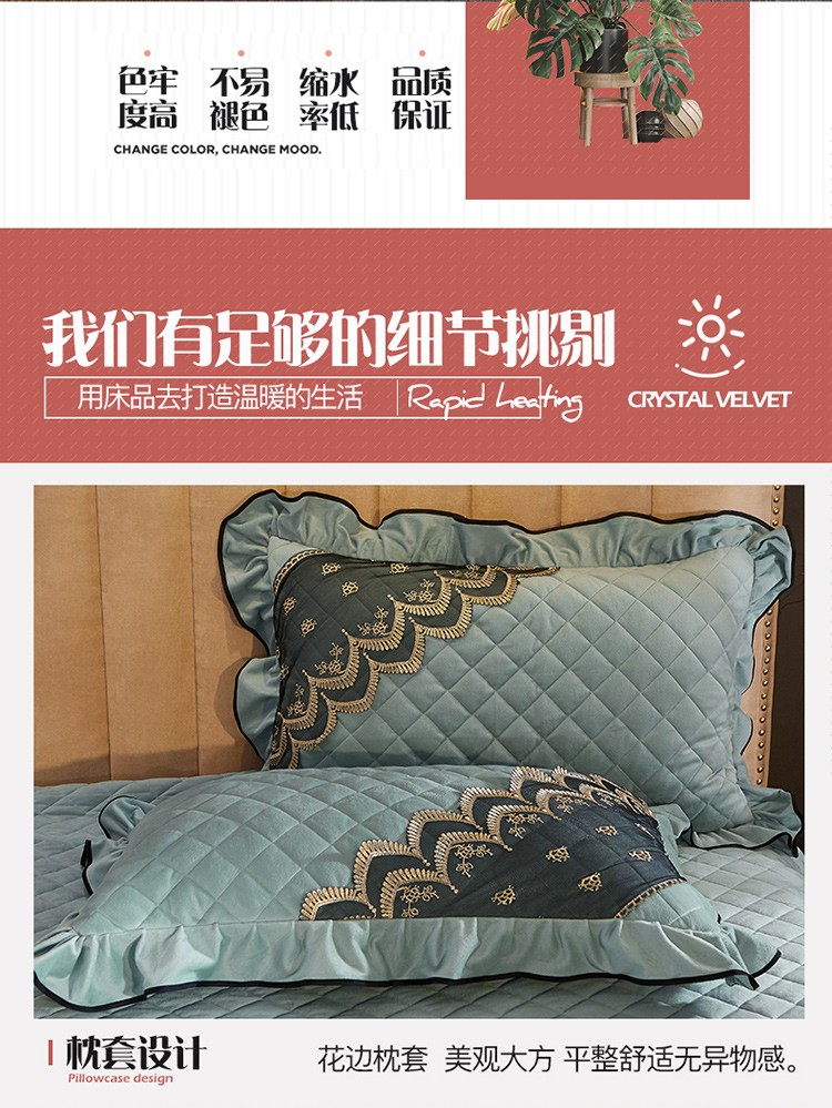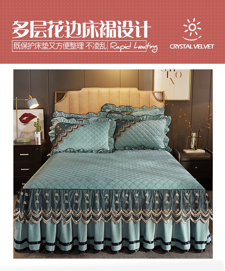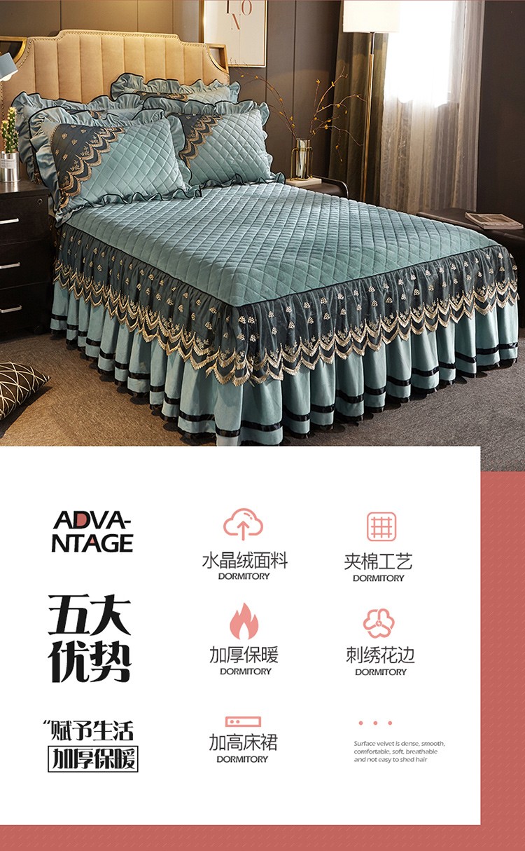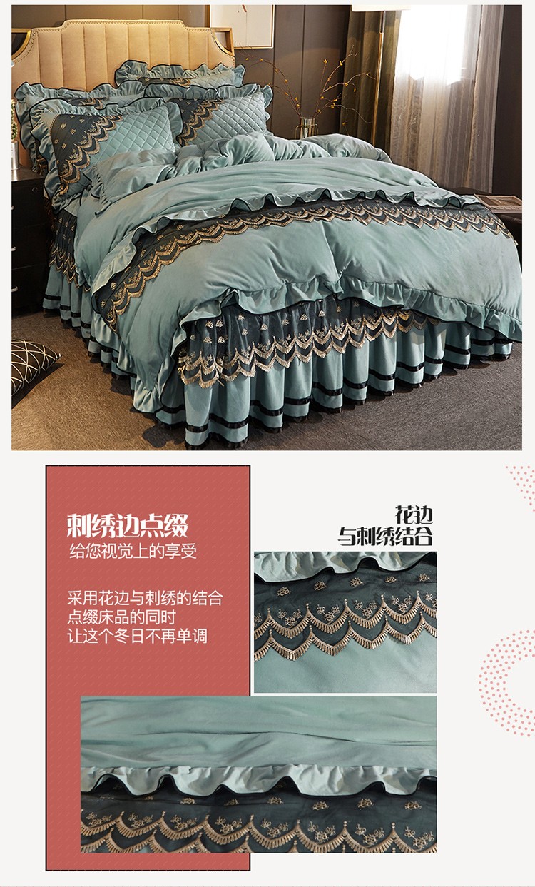 商品名称:网红馆 2025新款玲珑时尚水晶绒夹棉床裙四件套 豆绿