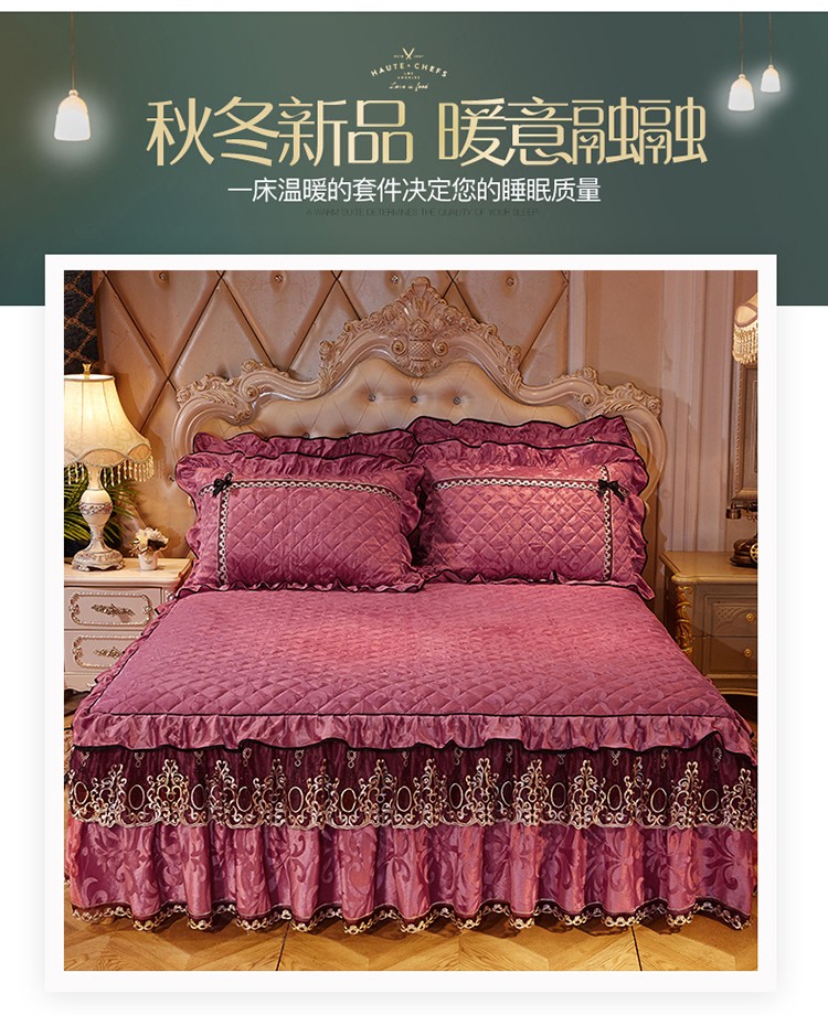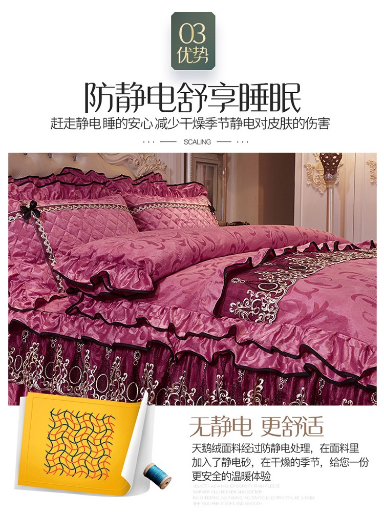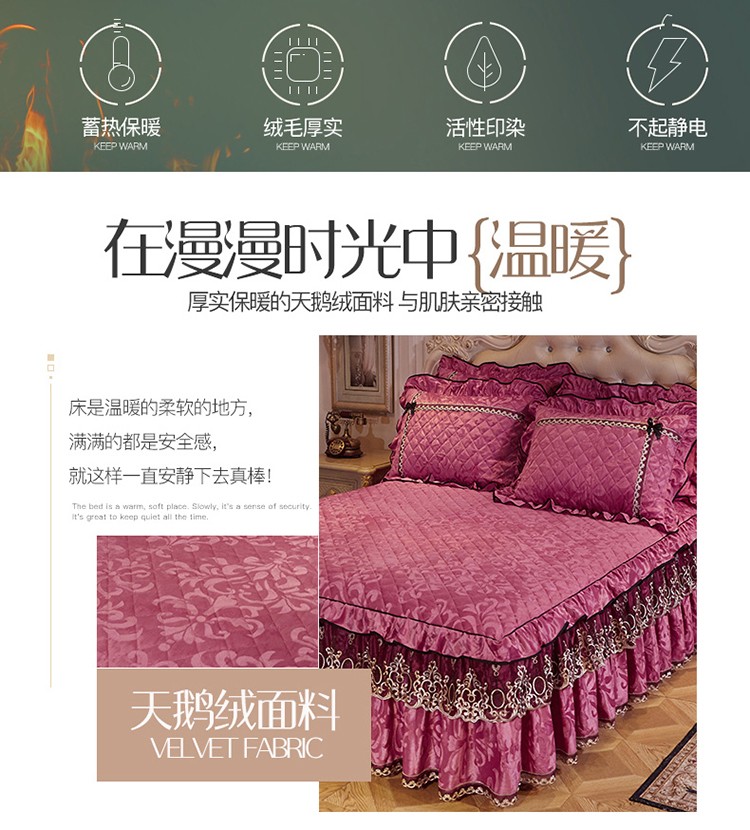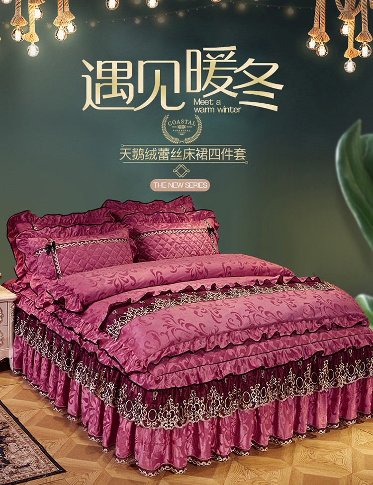 商品名称:网红馆 2025新款梦醉奢华天鹅绒床裙四件套 豆沙