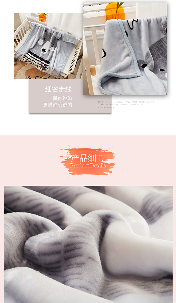 商品名称:凯轩毛毛毯毯子 加大加厚儿童云毛毯毯子 盼盼灰