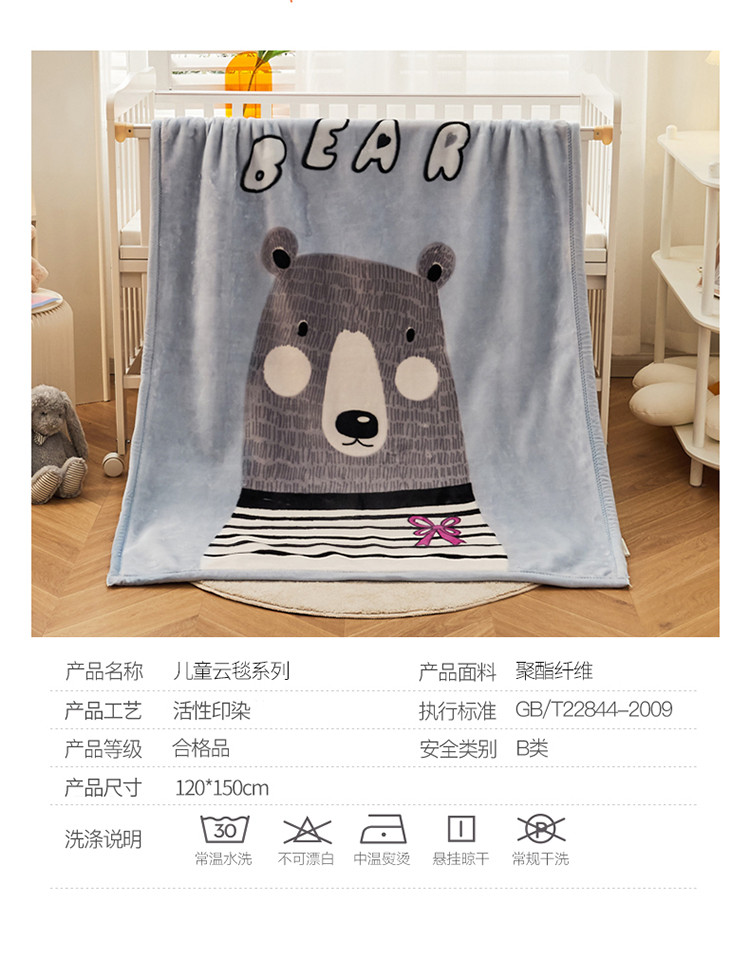凯轩毛毛毯毯子 加大加厚儿童云毛毯毯子 盼盼灰