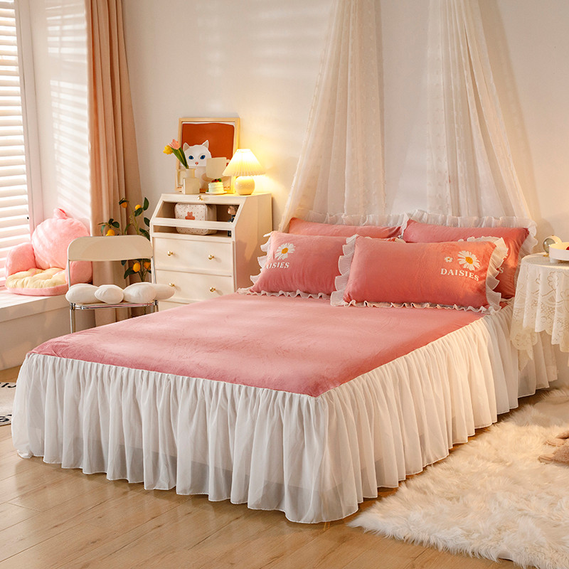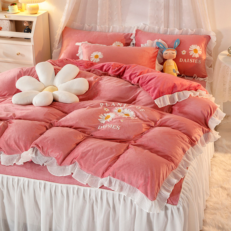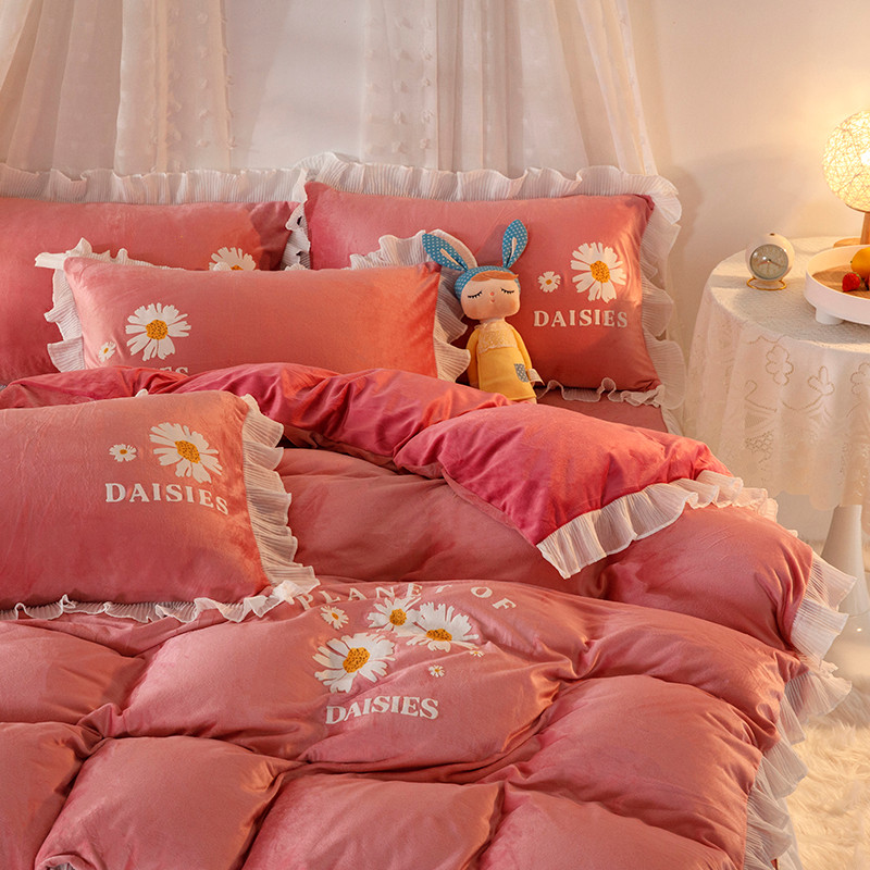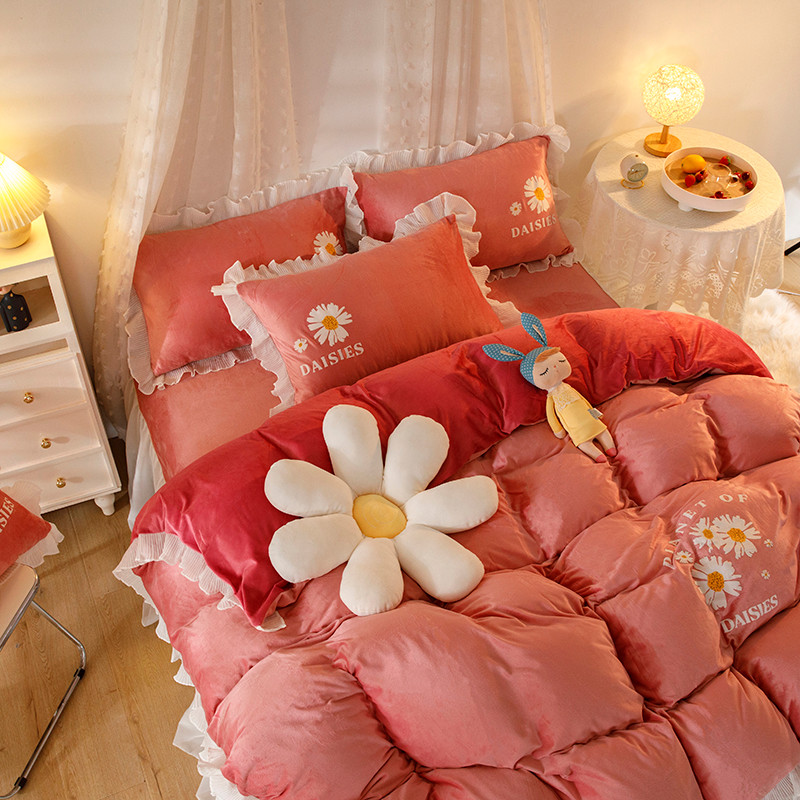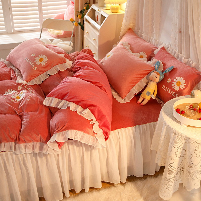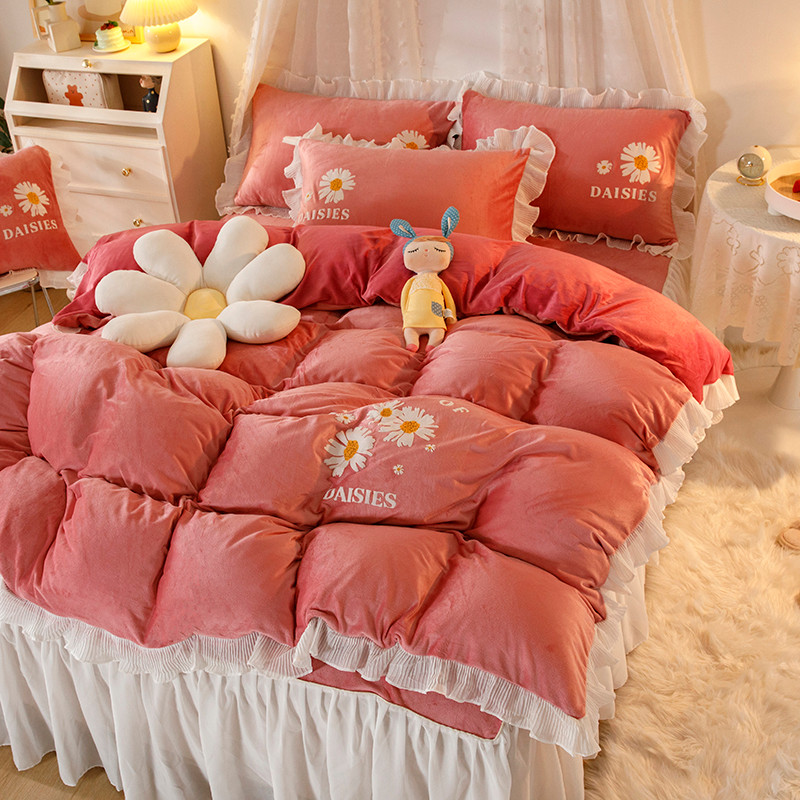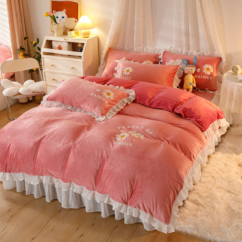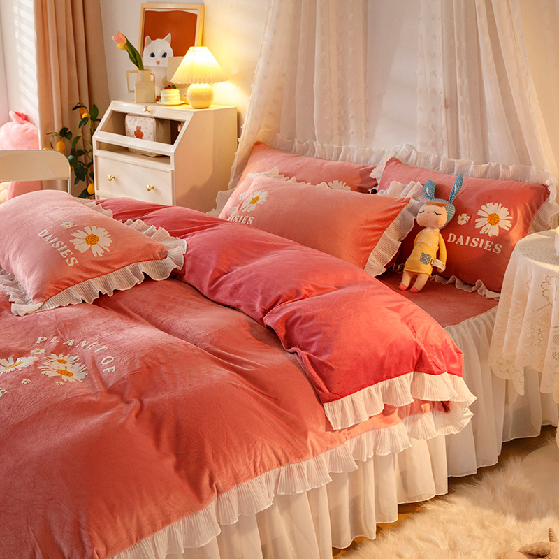 纽缦 2021新款韩版水晶绒床裙四件套 雏菊-深浅豆沙