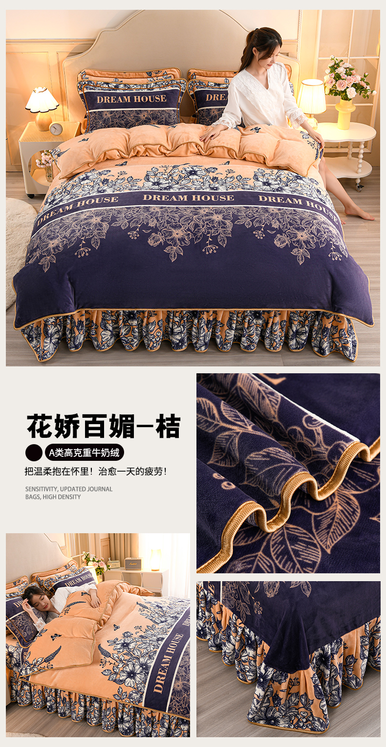 羽梦2025新款8.5斤牛奶法莱绒金貂法兰绒四件套直播爆款三生有杏,三生有杏