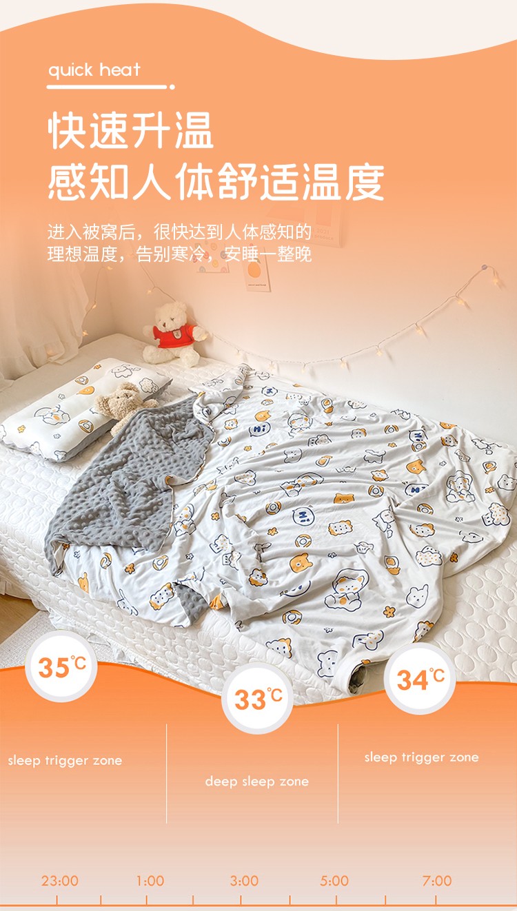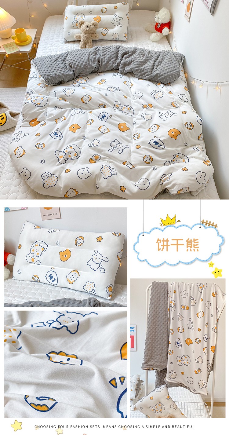 希诺家居新款多功能被套盖毯针织棉宝宝盖毯有拉链可拆洗 饼干熊
