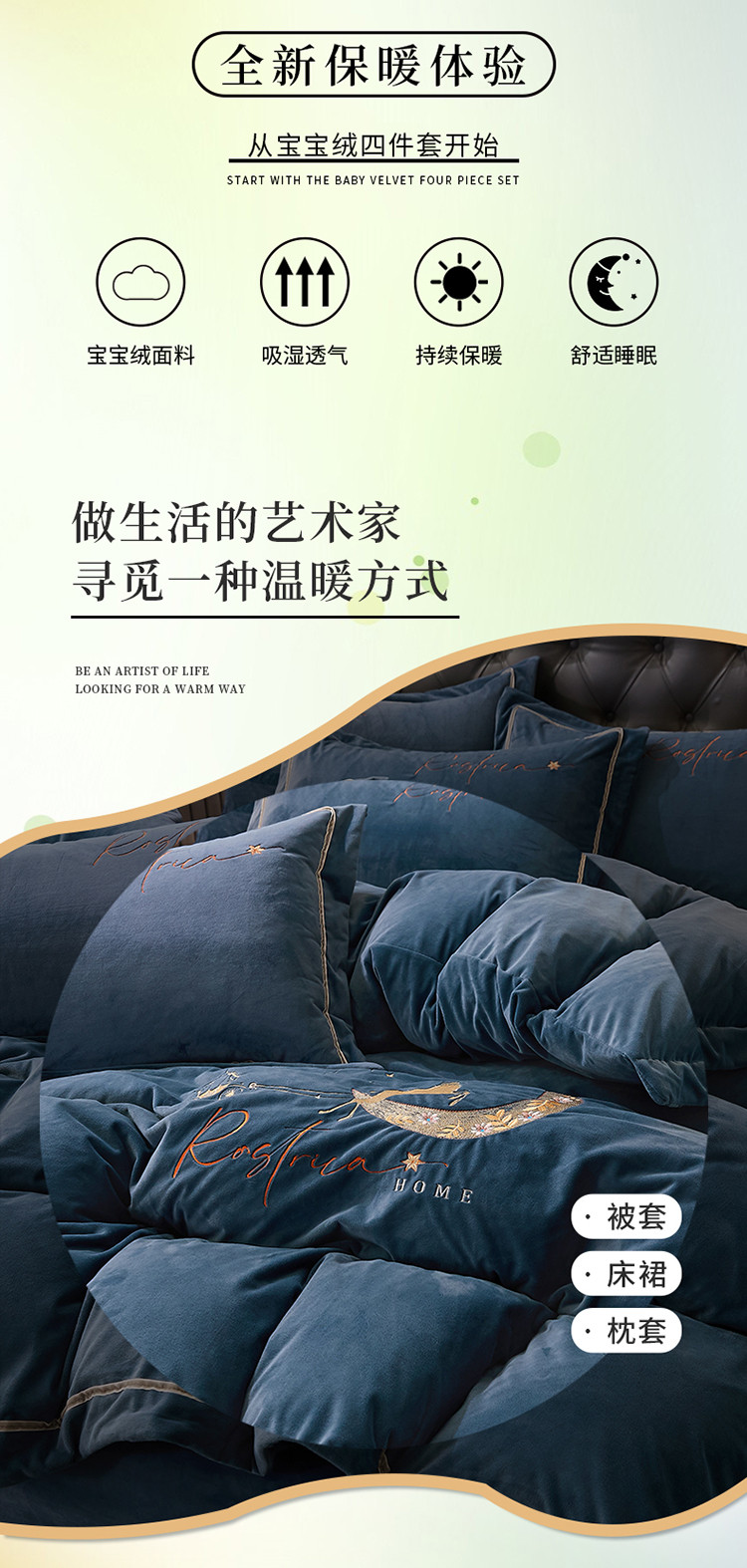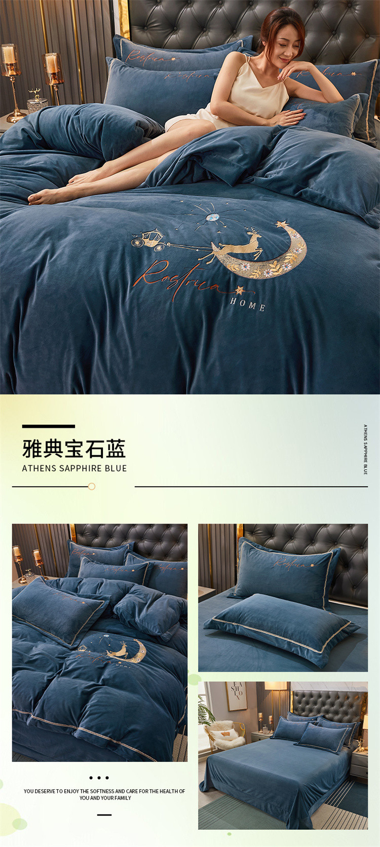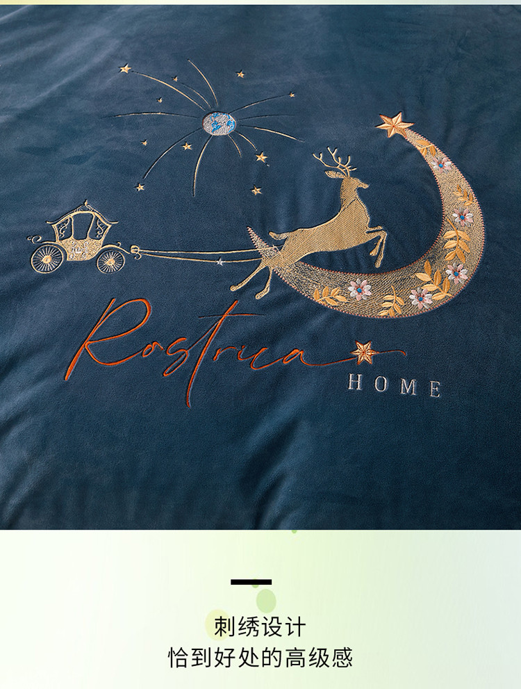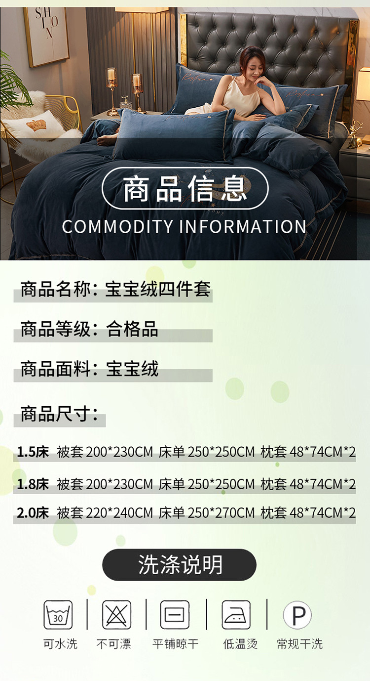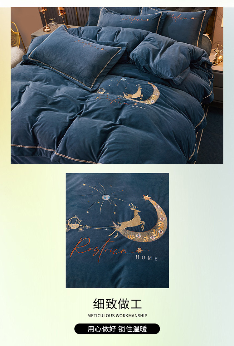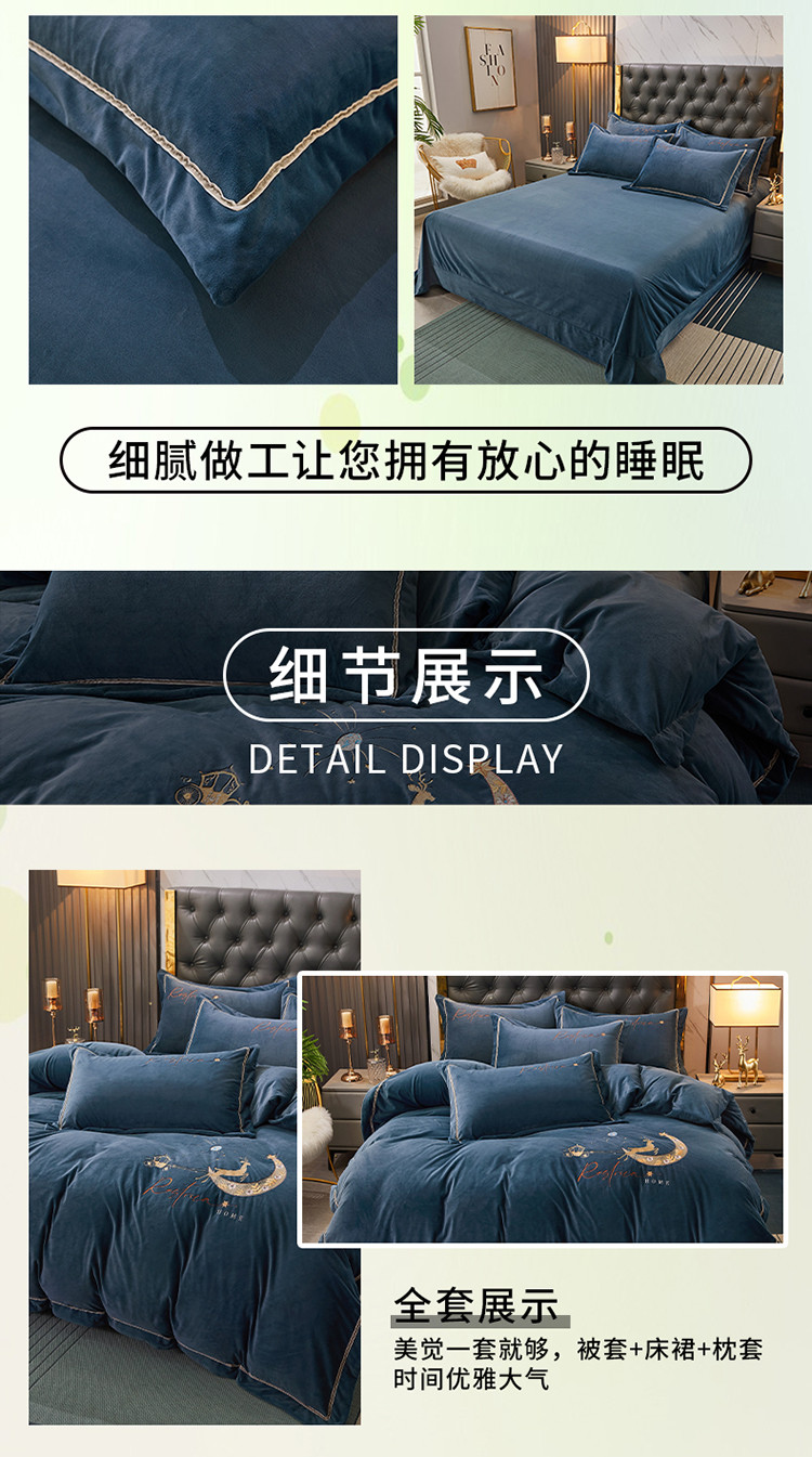 商品名称:铠畅 2021新款典雅宝宝绒刺绣四件套 典雅-宝石蓝