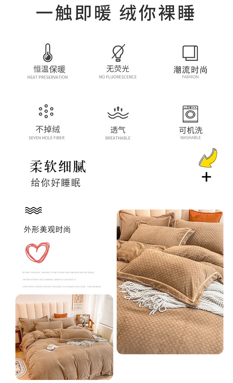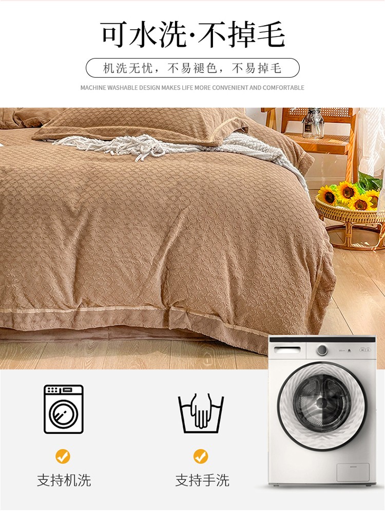 商品名称:金爱家2021新款荷叶边立体雕花绒暖绒四件套 咖色