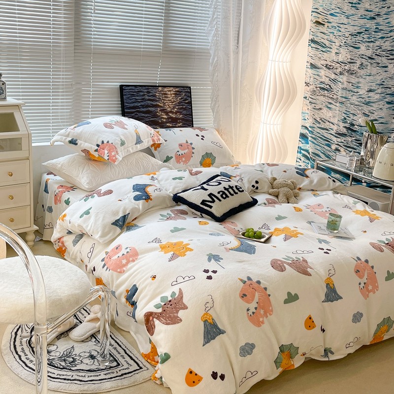 昔可家纺 2021新款牛奶绒四件套-一批 森林恐龙