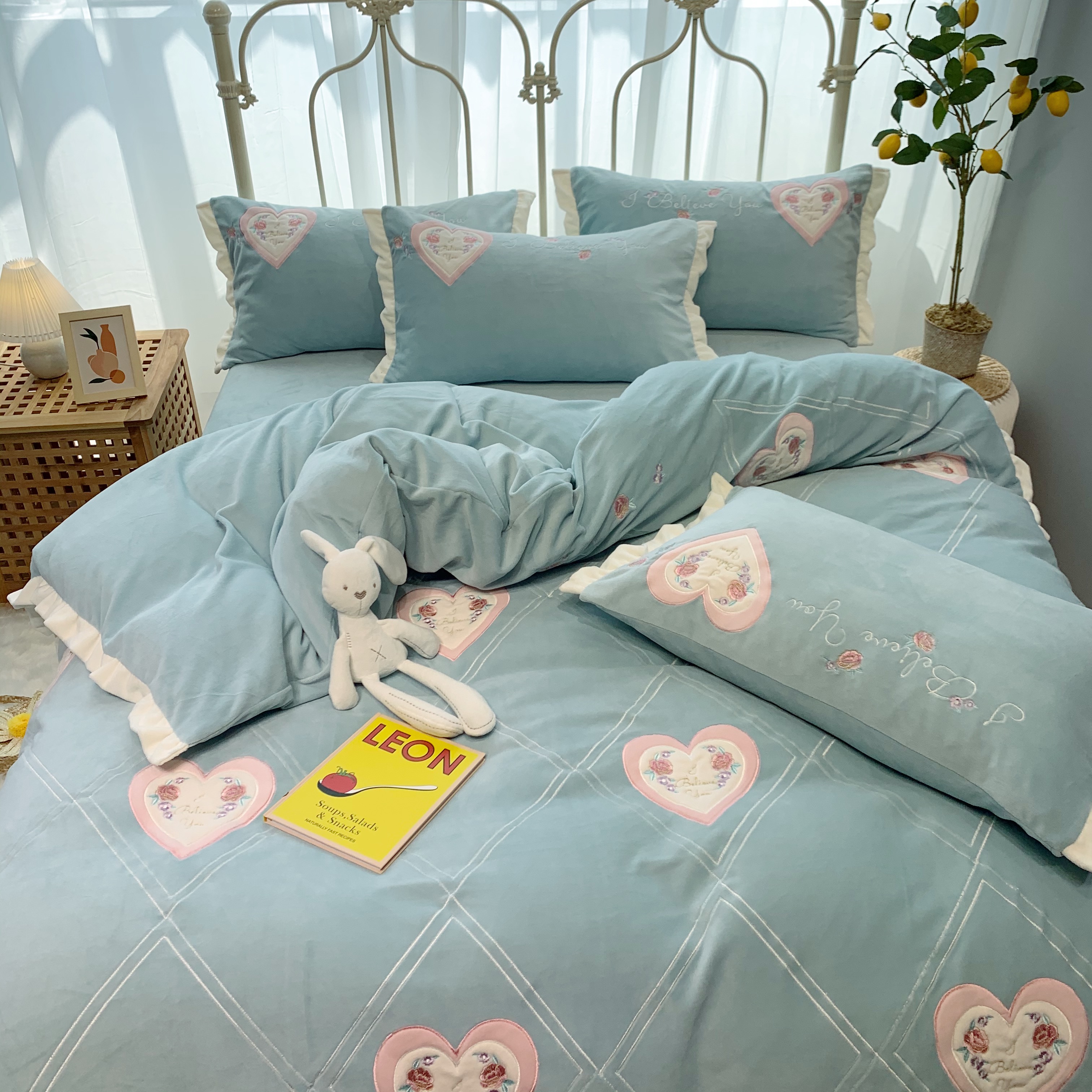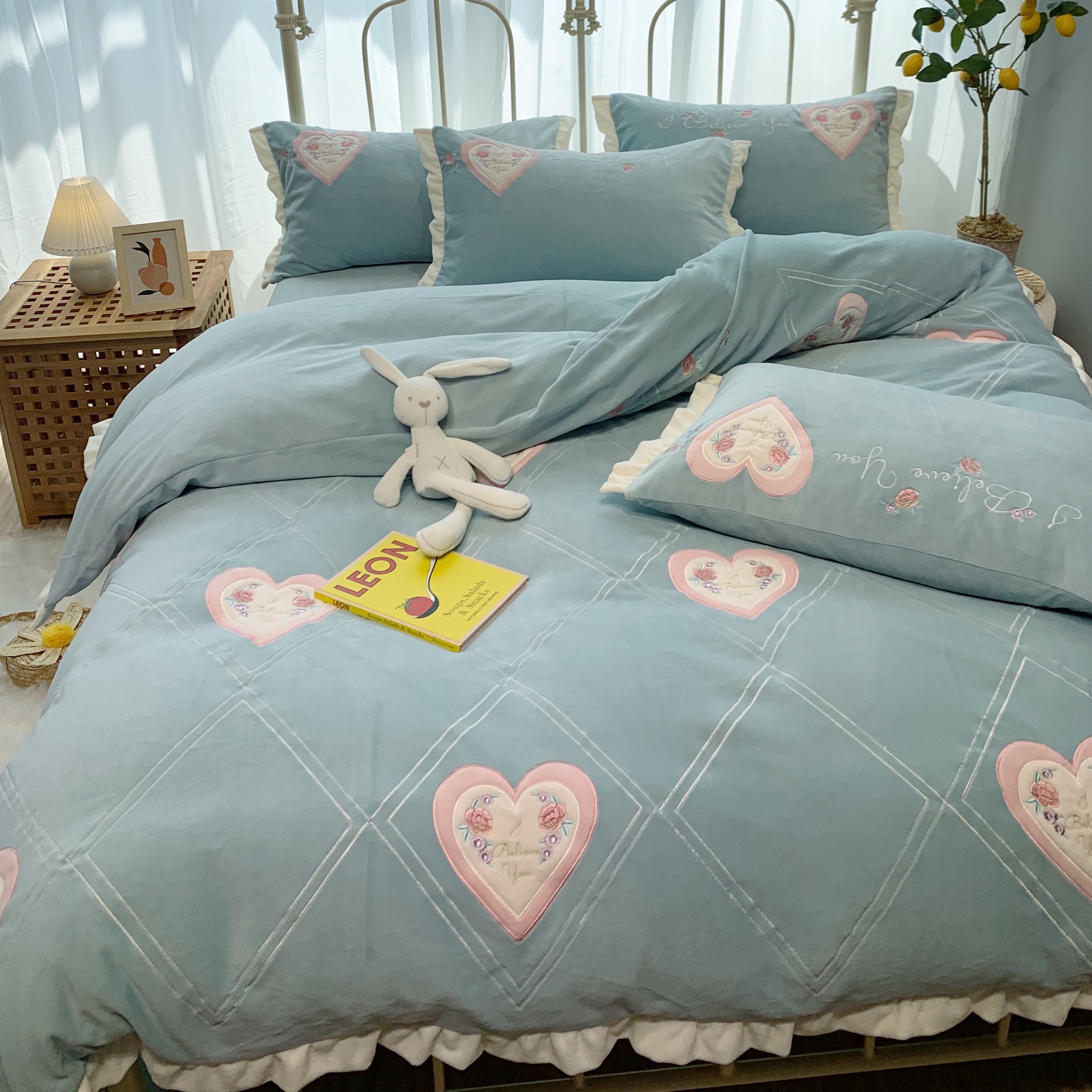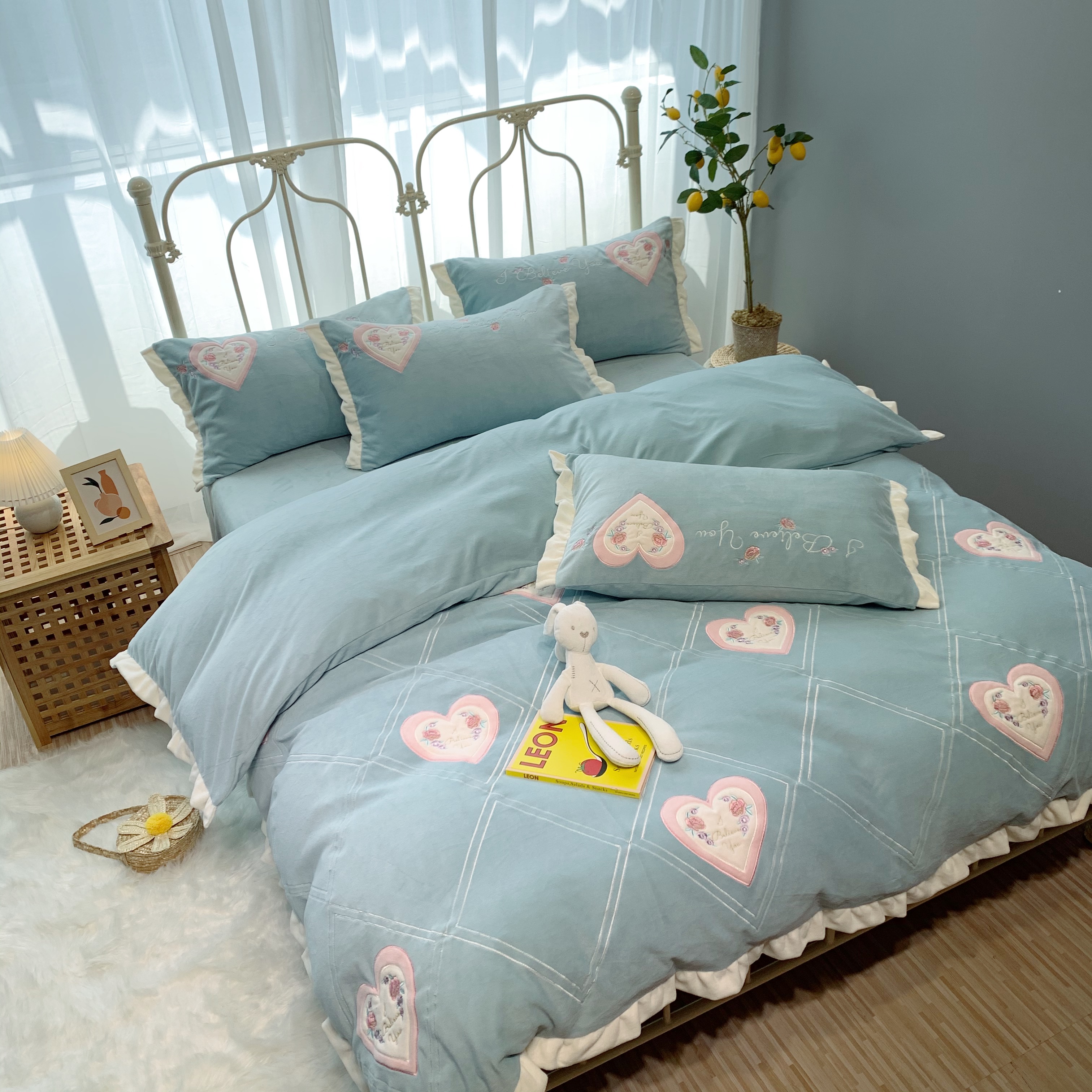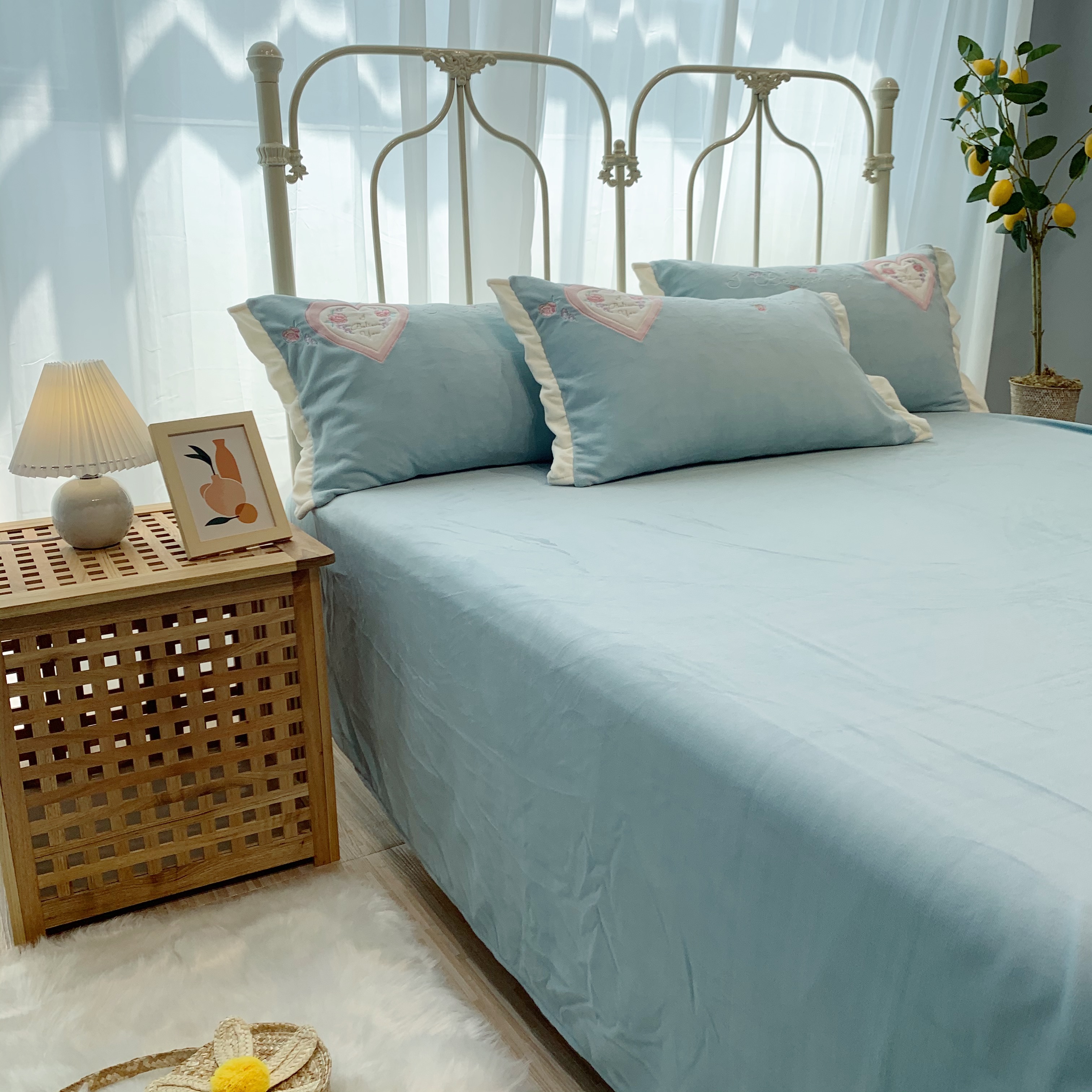 馨蕊 2021新品秋冬轻奢煦暖绒系列-心心相印 心心相印-湖水蓝