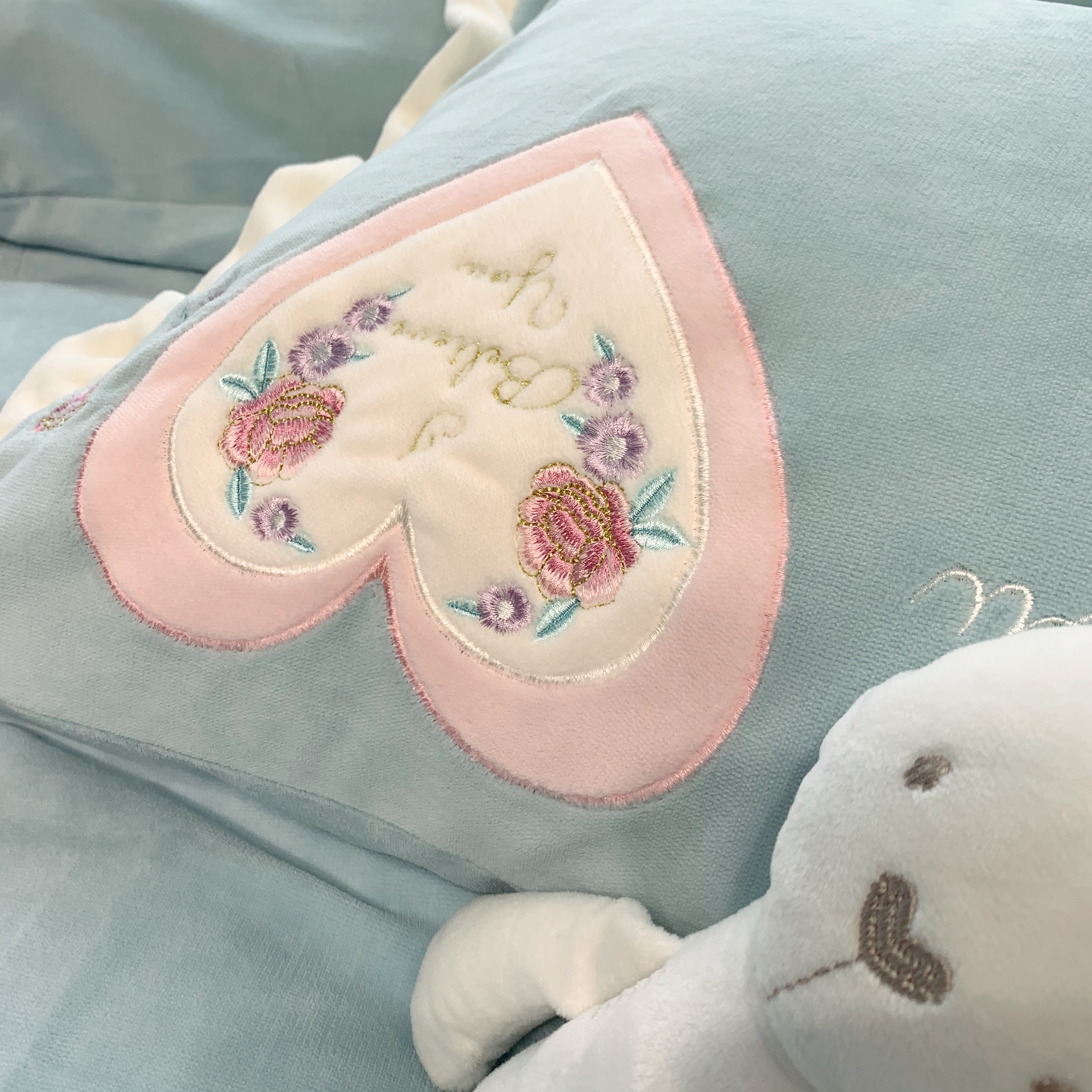 商品名称:馨蕊 2021新品秋冬轻奢煦暖绒系列-心心相印 心心相印-湖水蓝