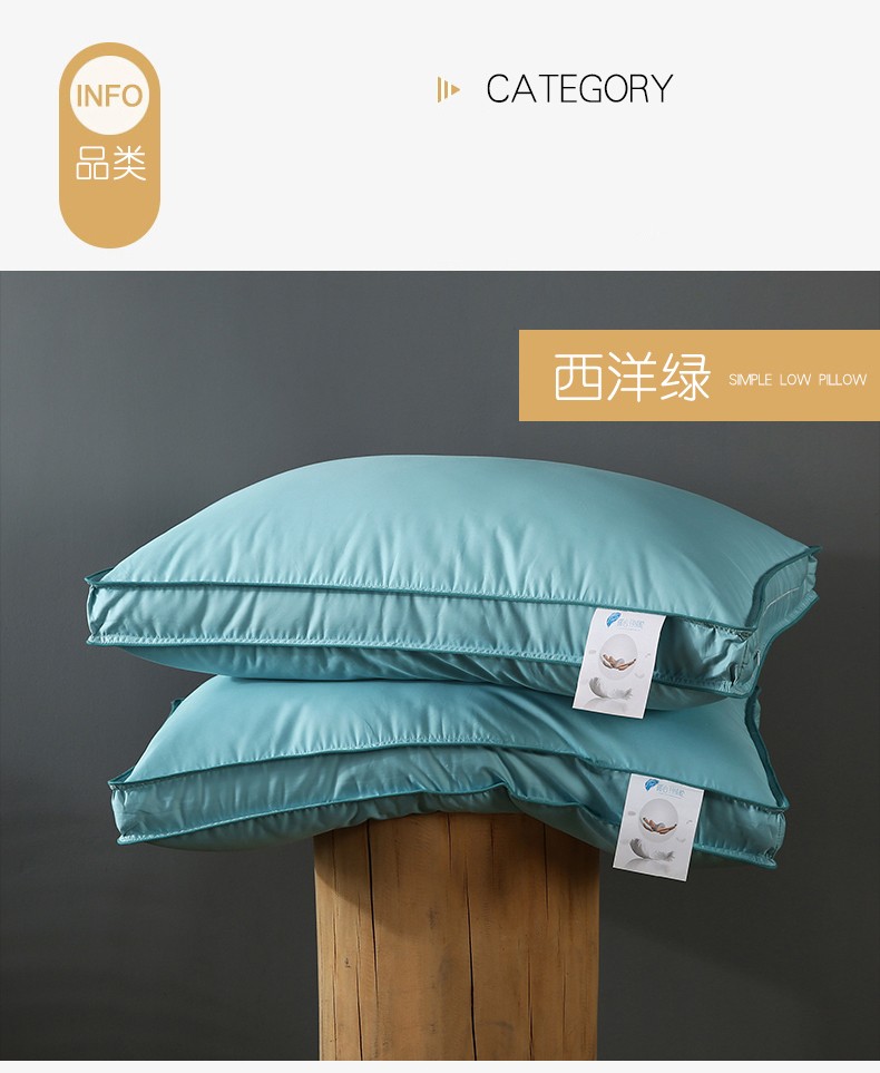 2022新品全棉防羽布低枕羽丝绒枕头水洗定型护颈单人枕芯,全棉防羽布简约定型低枕