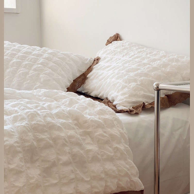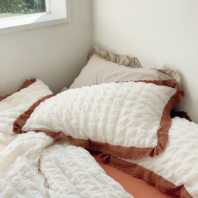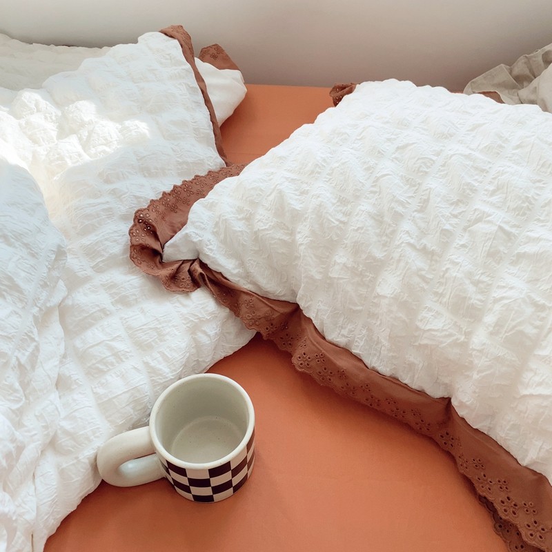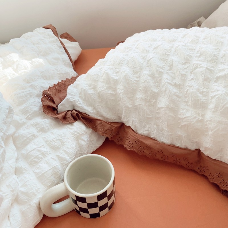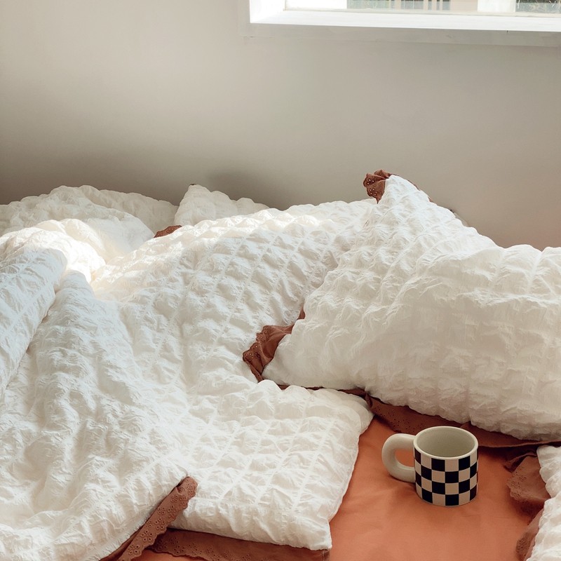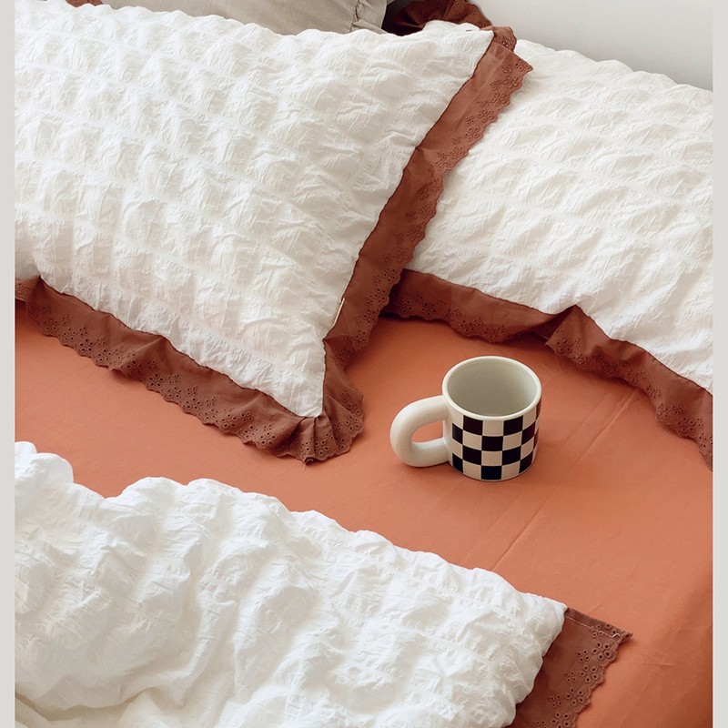 商品名称:桔子家纺 2022春夏新品云朵泡泡纱四件套实拍图 南瓜色