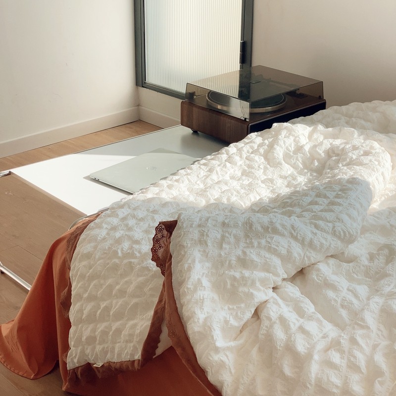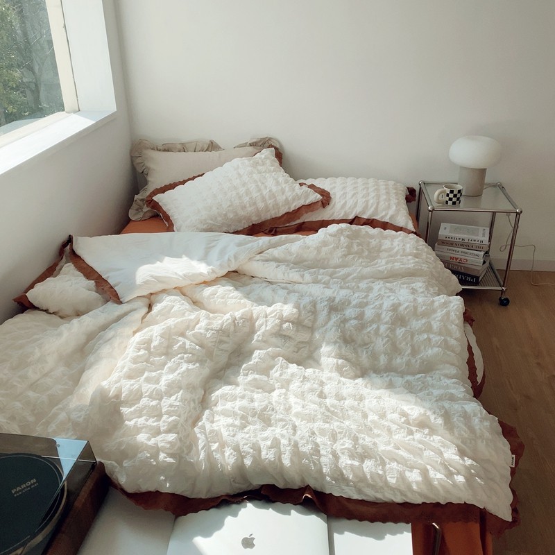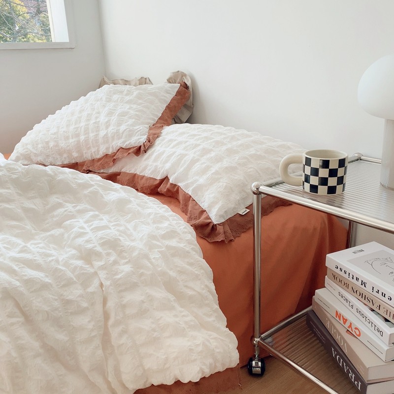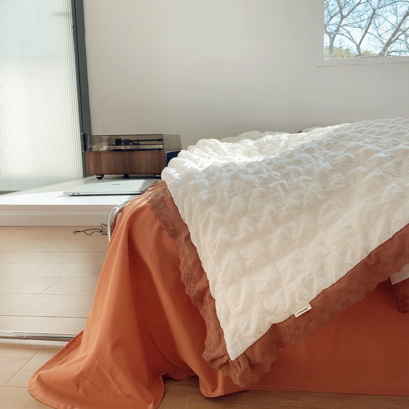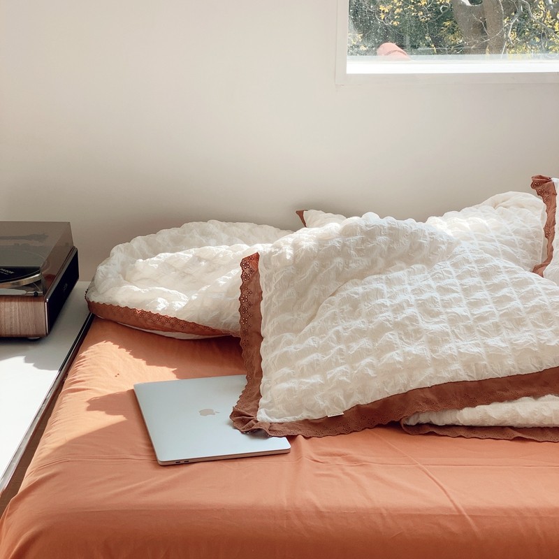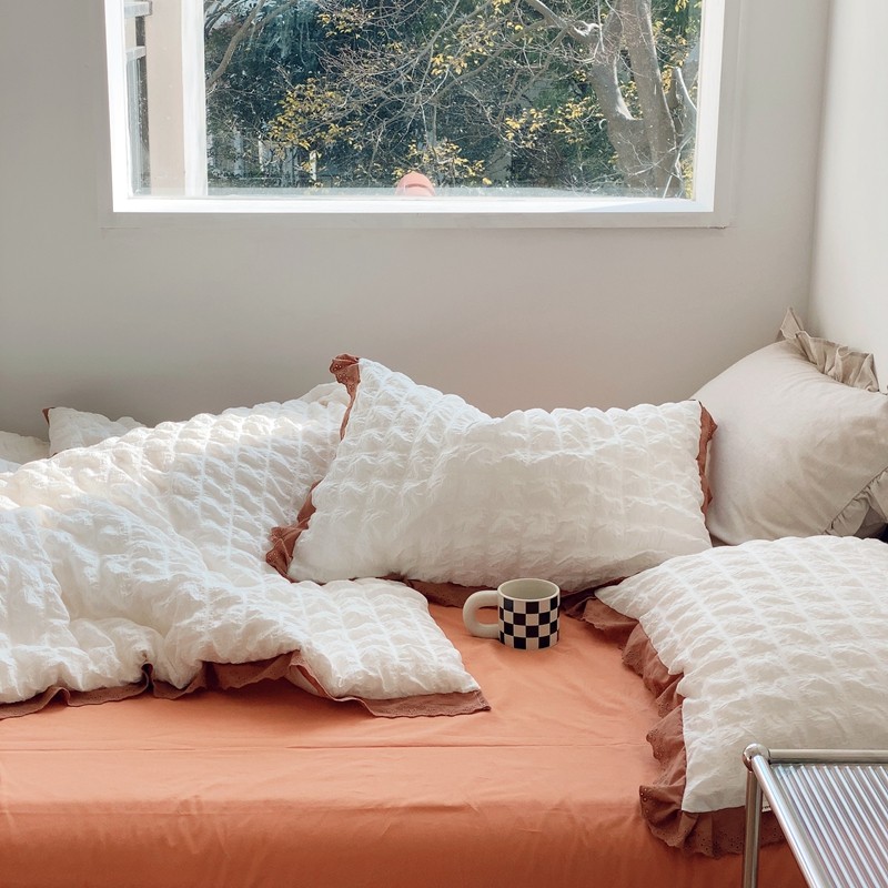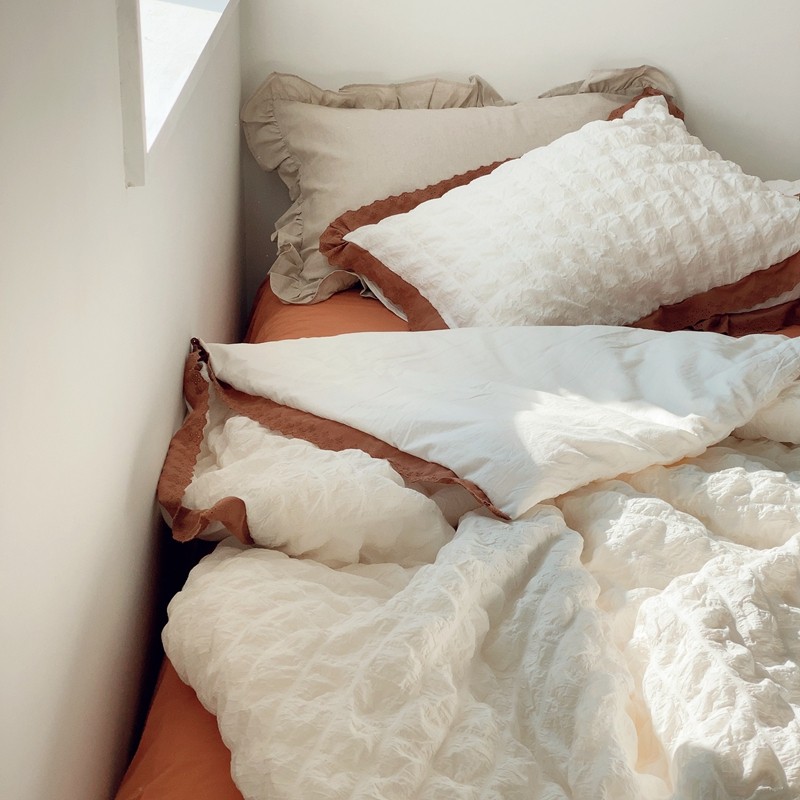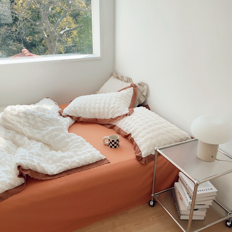 桔子家纺 2022春夏新品云朵泡泡纱四件套实拍图 南瓜色