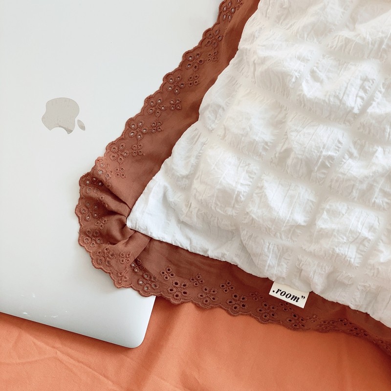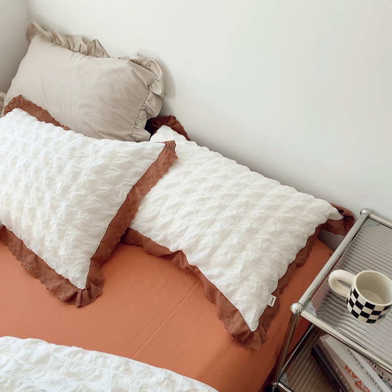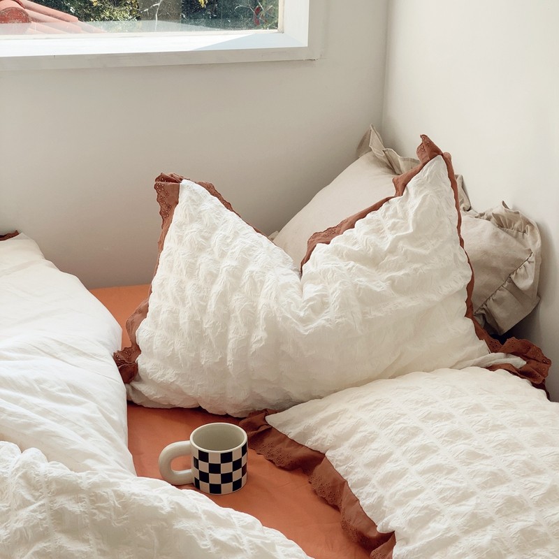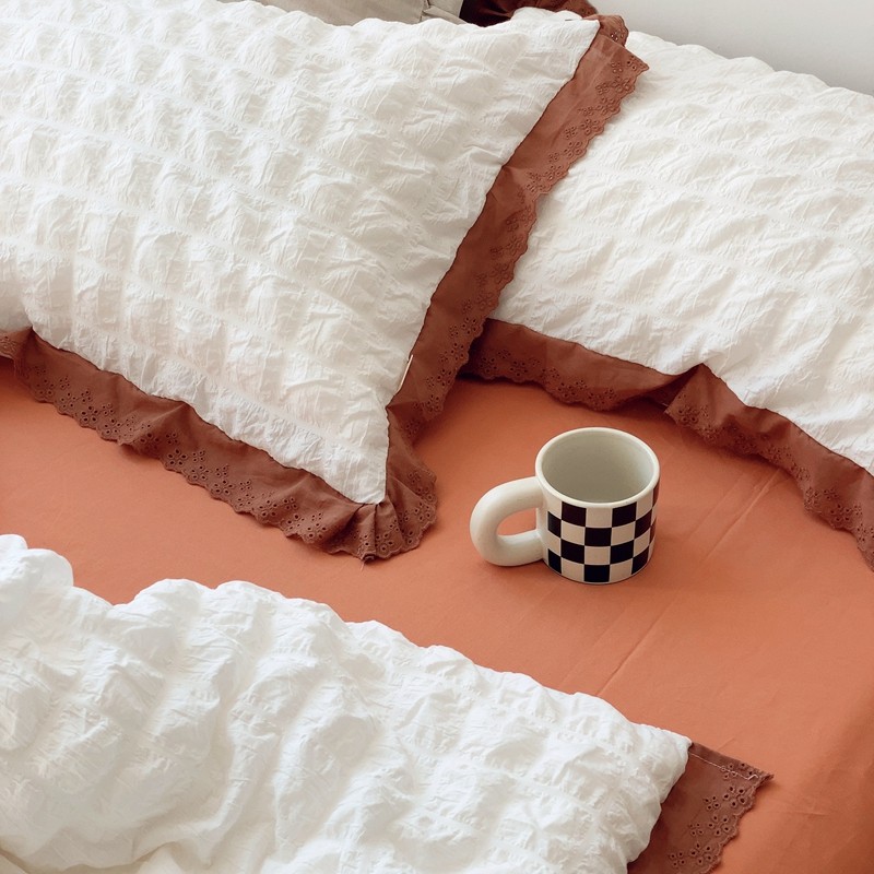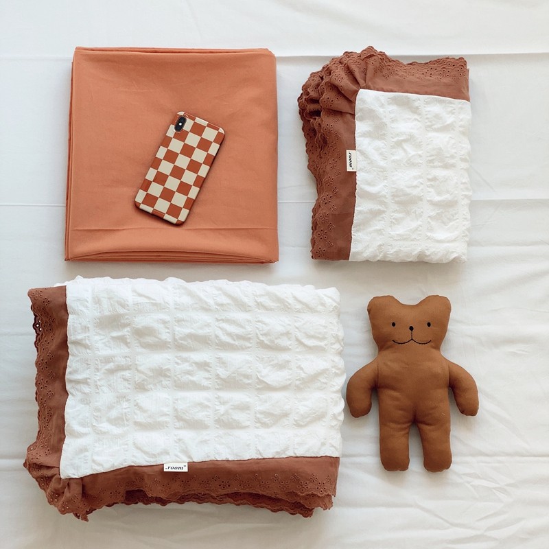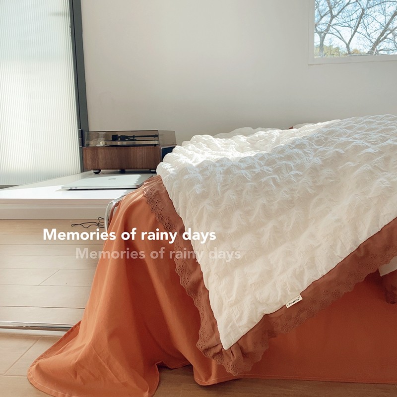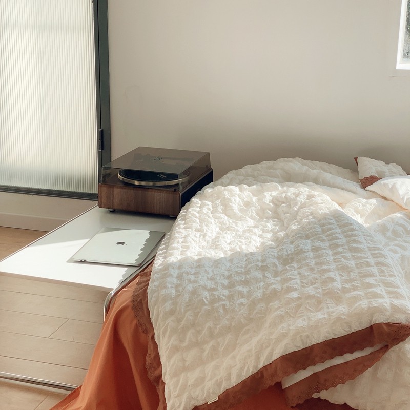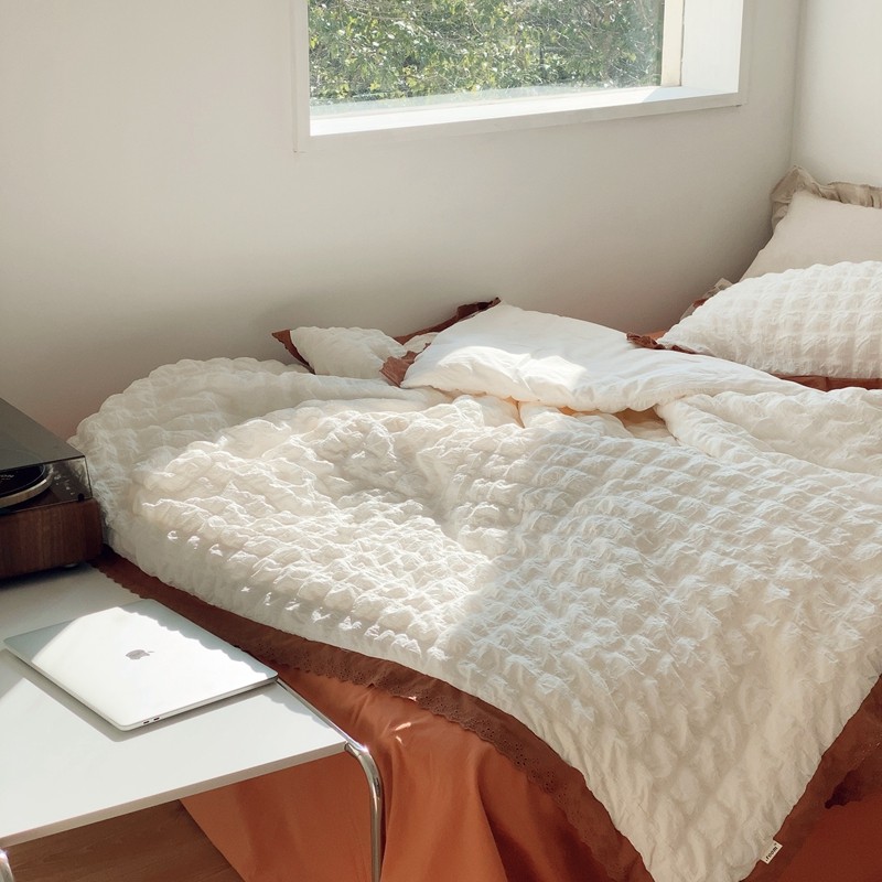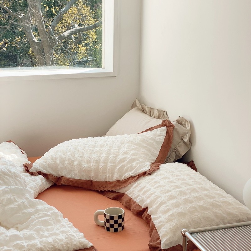 桔子家纺 2022春夏新品云朵泡泡纱四件套实拍图 南瓜色