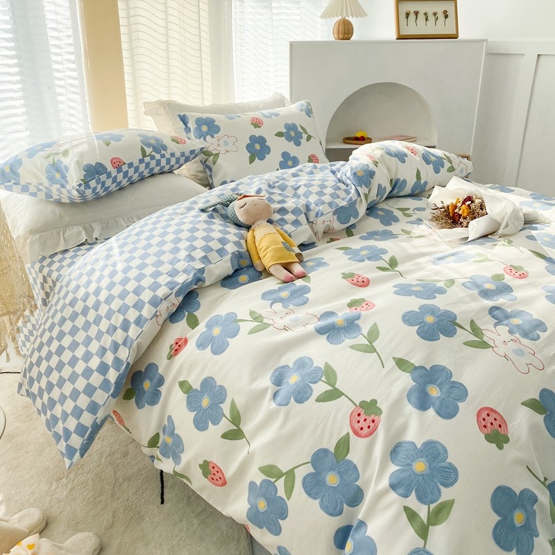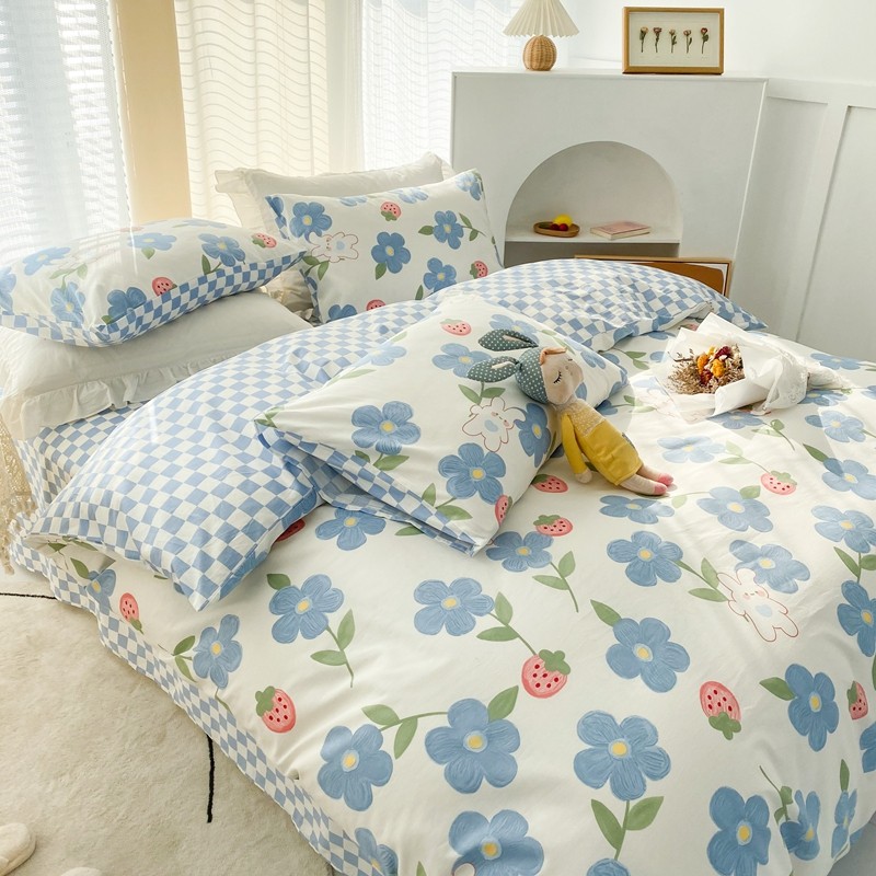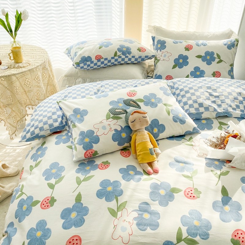 商品名称:优彩2022新款全棉13372印花单被套 蓝花兔