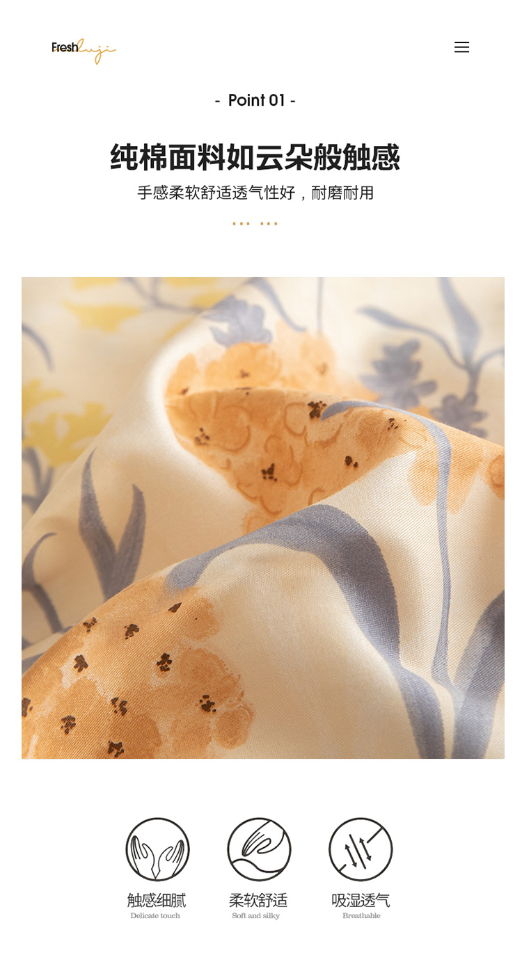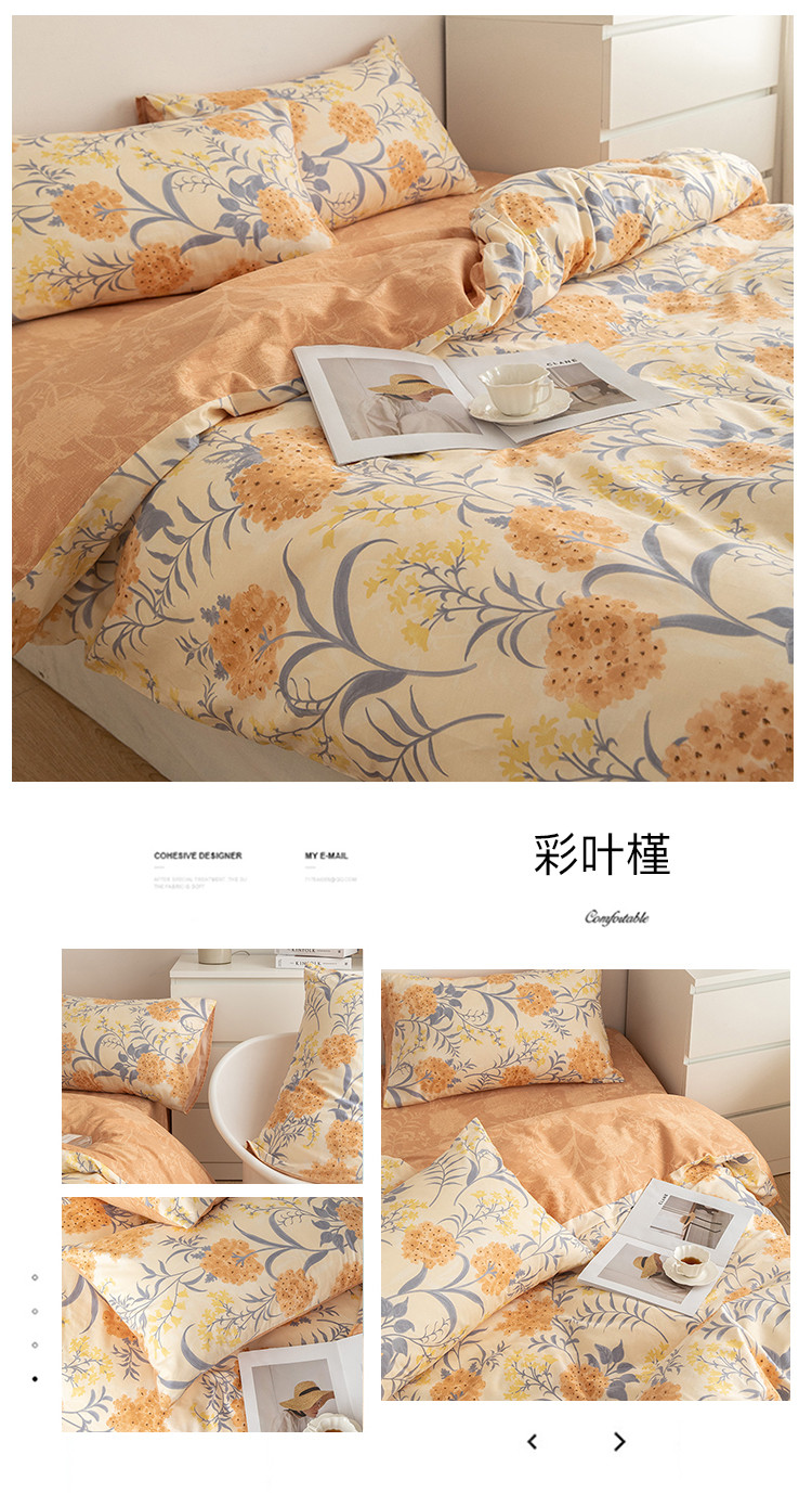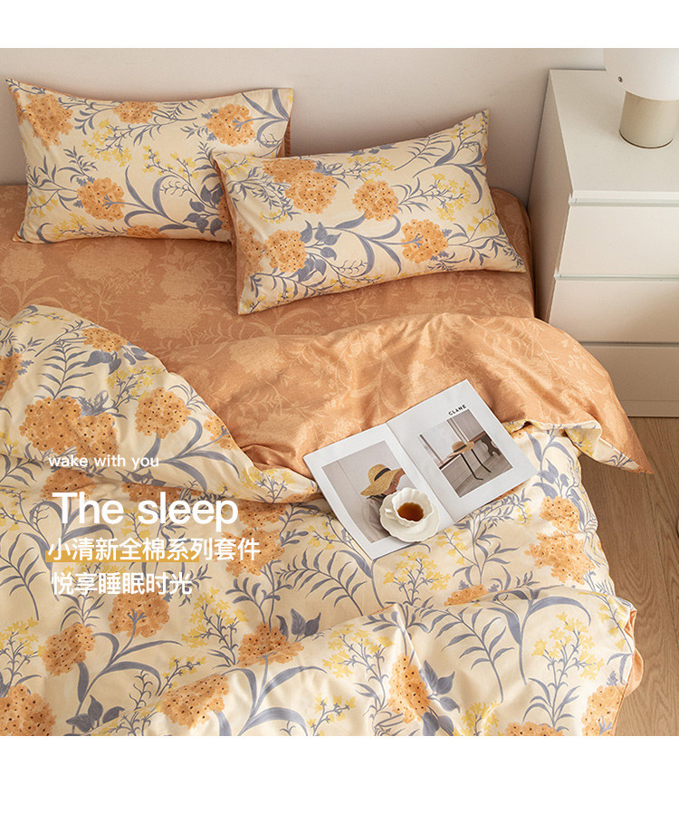 商品名称:绫韵 2022新款田园小清新全棉四件套春半梦花系列 彩叶槿