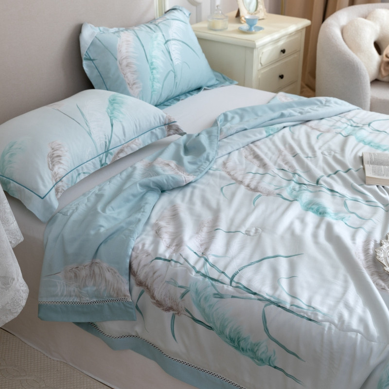 棉生活家纺 2022新款莫代尔天丝夏被甘棠灰绿