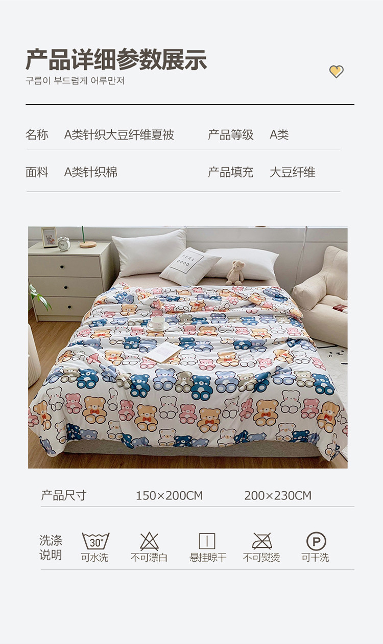 商品名称:佰亿莱 2024新款针织大豆纤维夏被 熊熊乐园