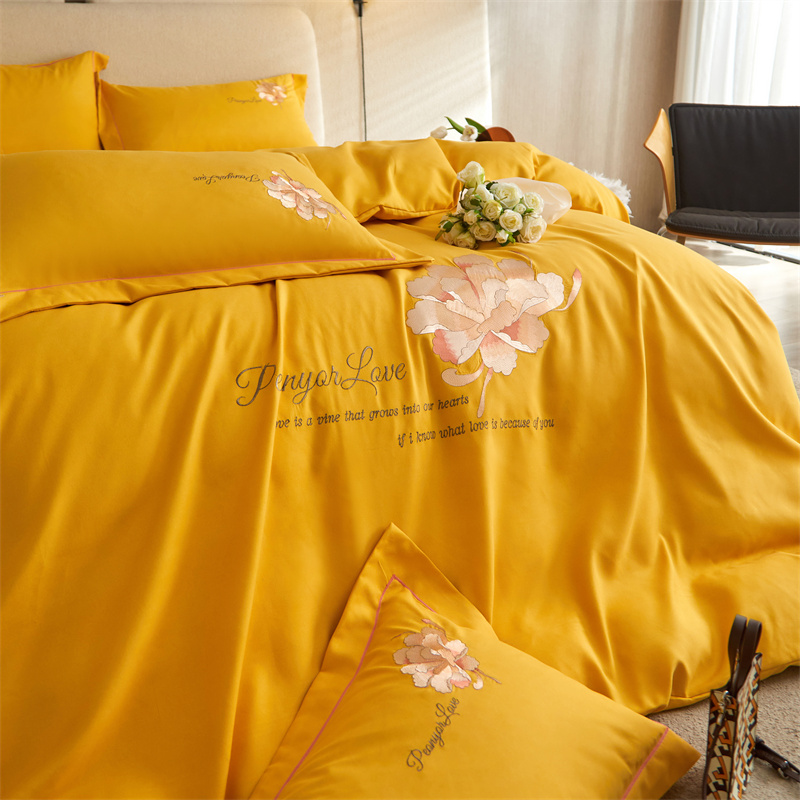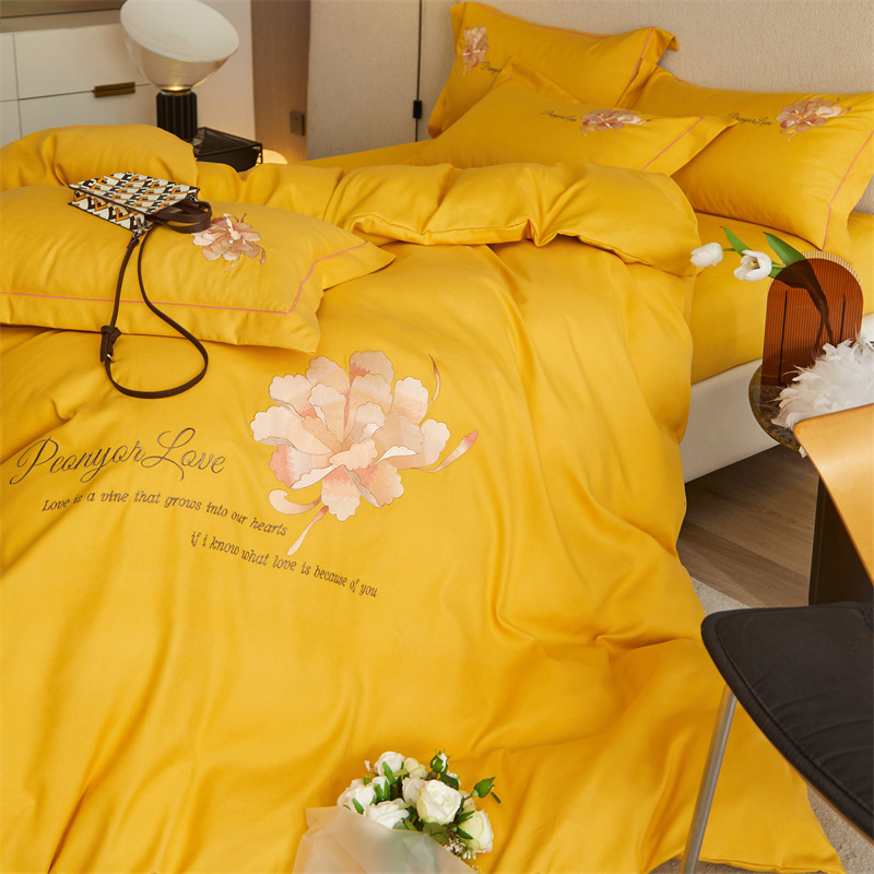 凡客 2022新款有氧棉重工刺绣花开富贵系列四件套 花开富贵-黄
