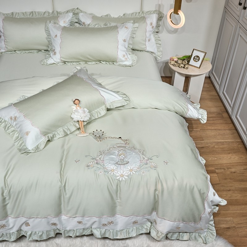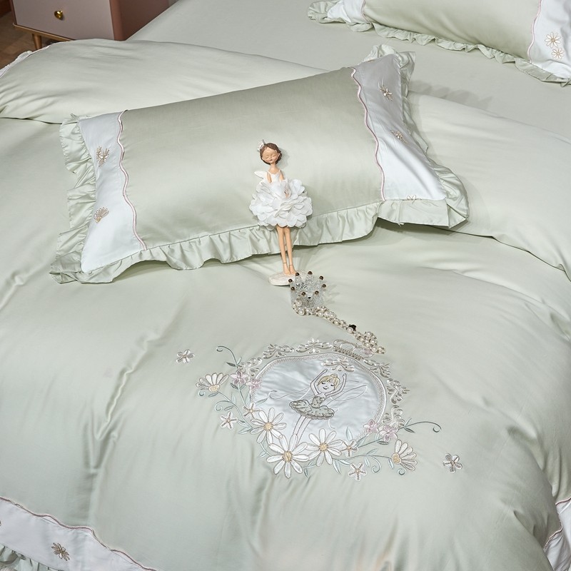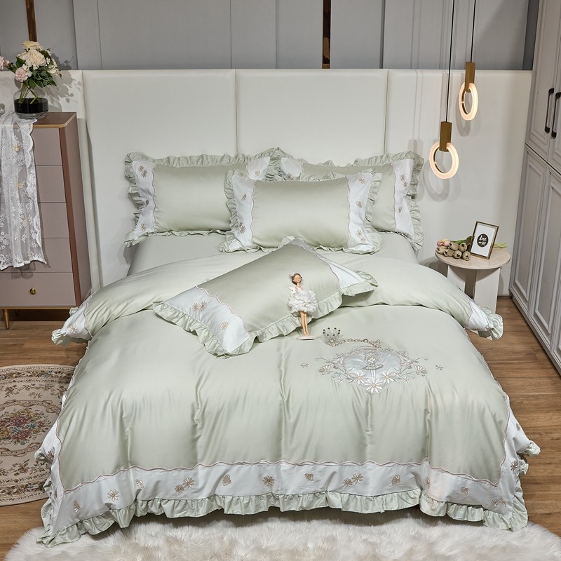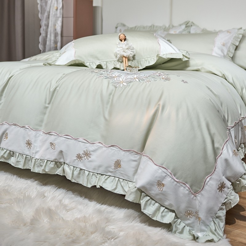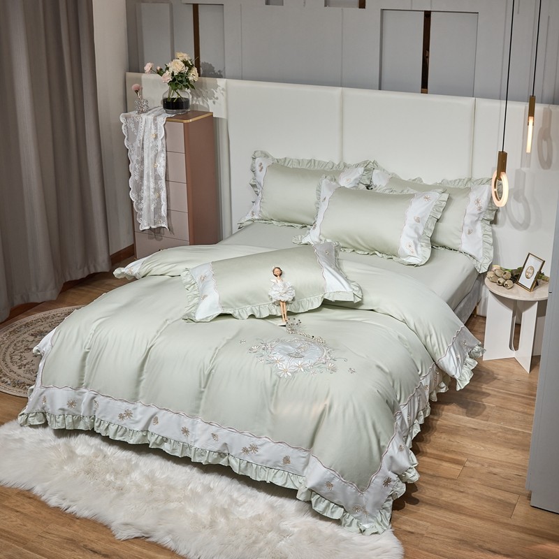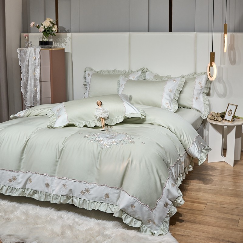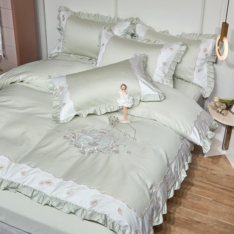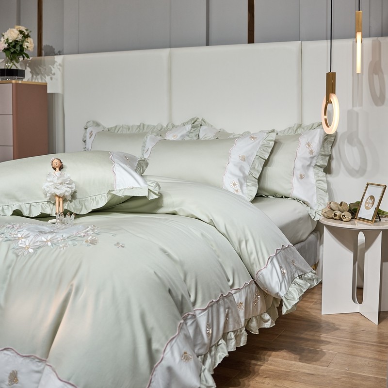 (总)星尚家纺 2024新款全消光230g牛奶绒刺绣保暖四件套-花漾,晨雾绿,豆沙粉,樱花粉