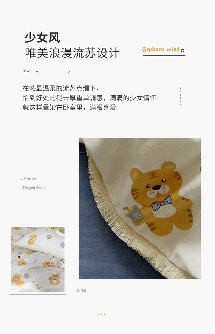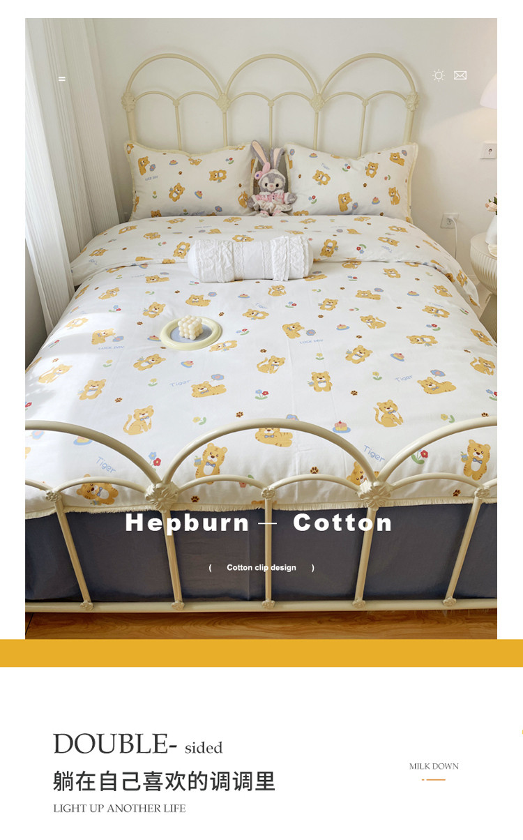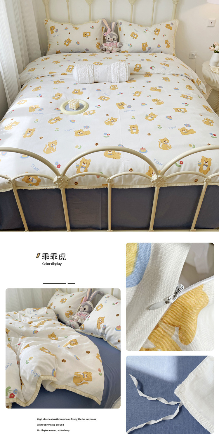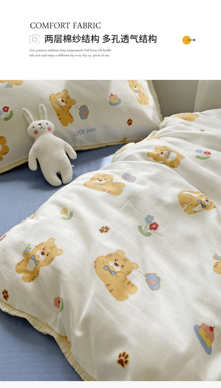 (总)2022 千朵新款双层纱全棉四件套纯棉四件套,乖乖虎,花间-红,花间-兰