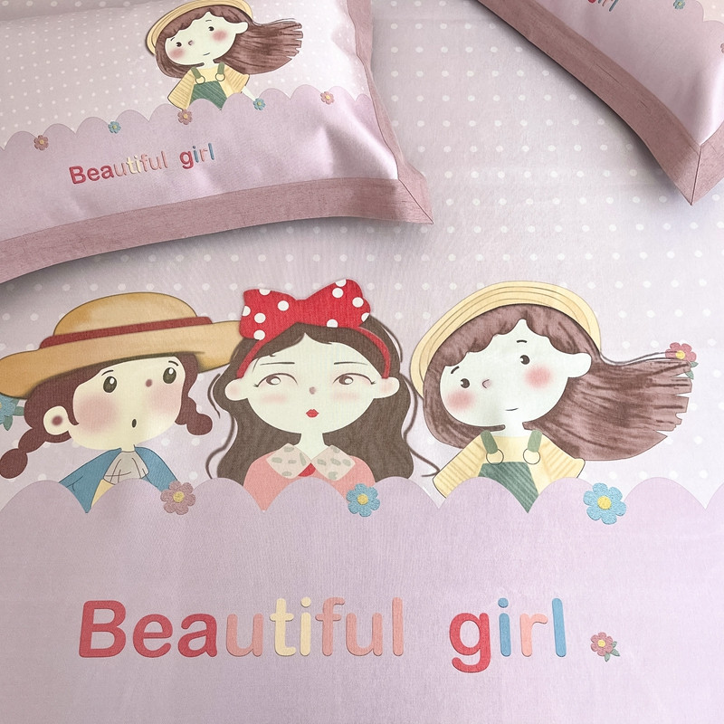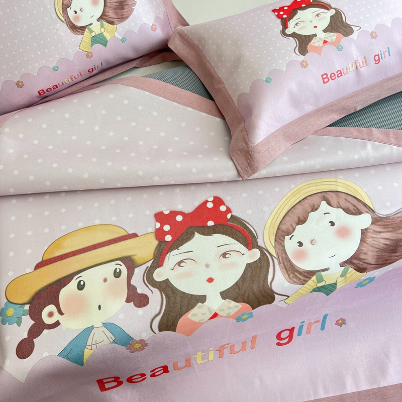 商品名称:本希 2022新款水洗数码印花卡通简约冰丝席床席款 甜心女孩