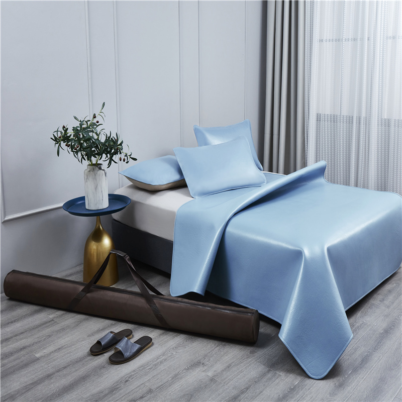 头层素彩牛皮席 水牛皮 牛皮凉席 头层牛皮 凉席,湖蓝色