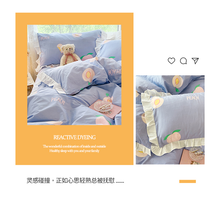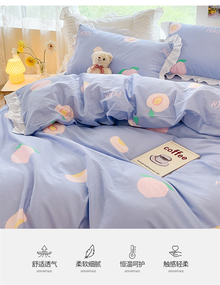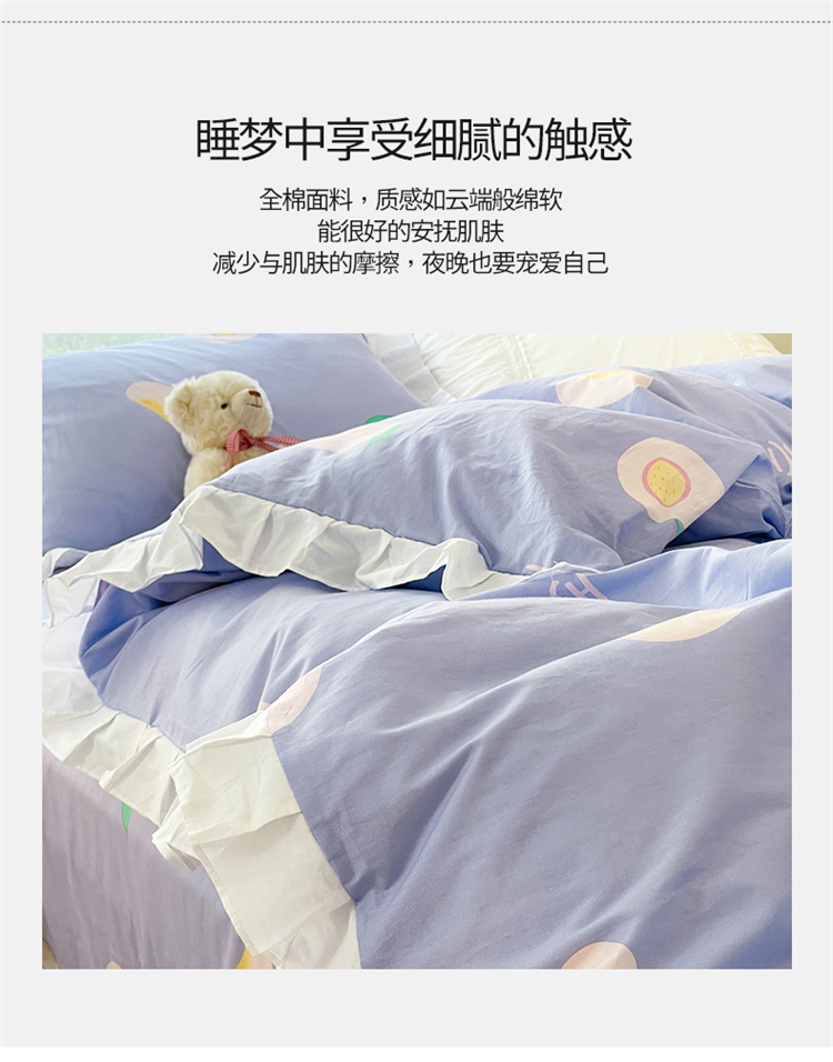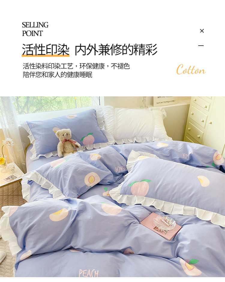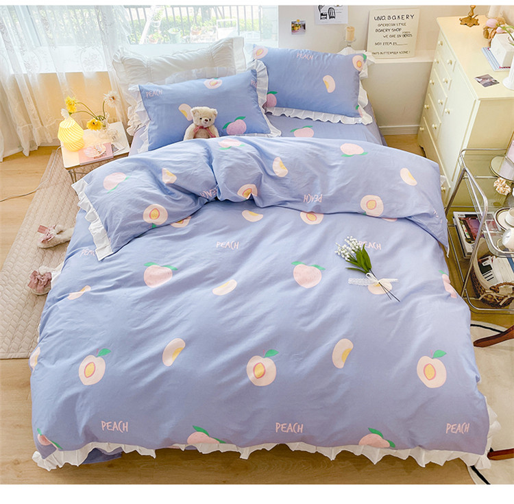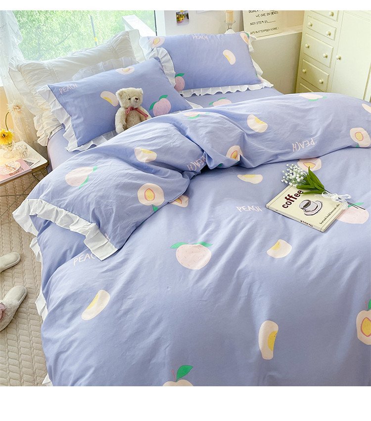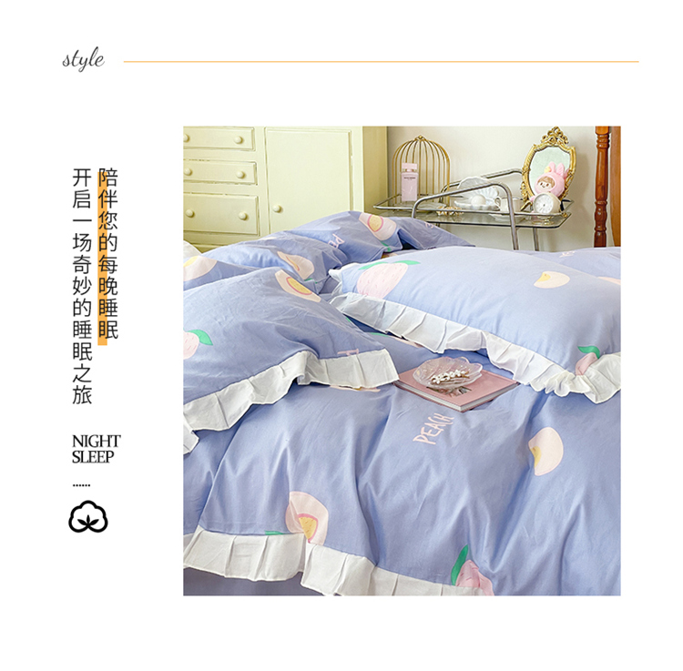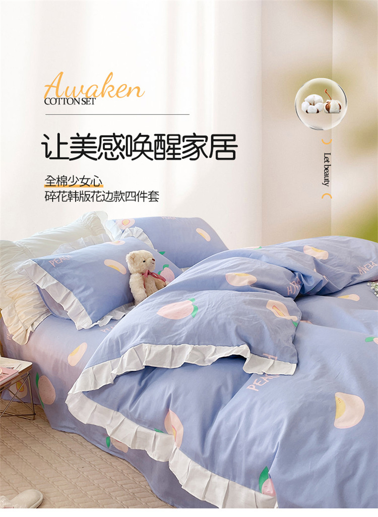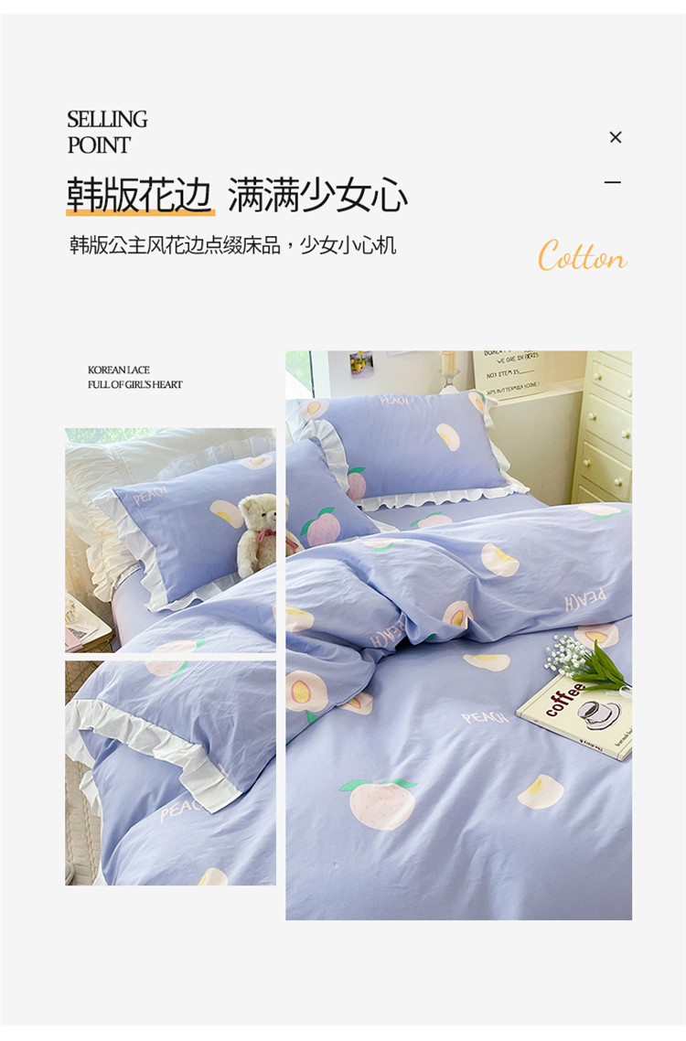 桃子家居 2022新款仙气奶油碎花少女心韩版花边纯棉四件套 花边紫色桃子