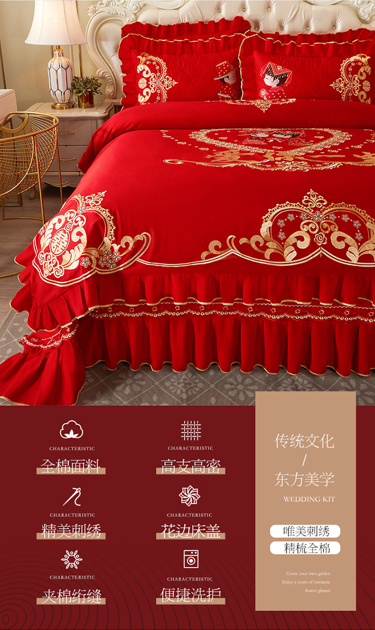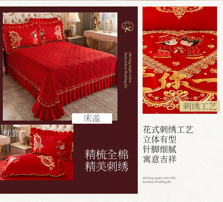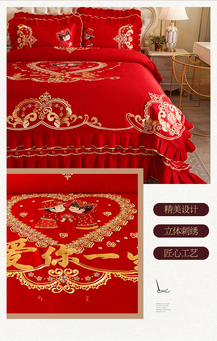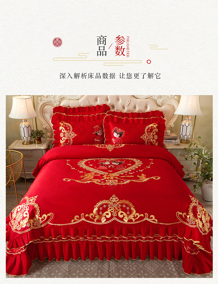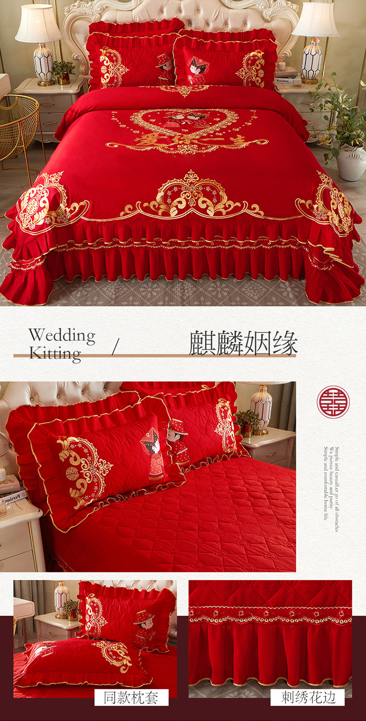 商品名称:宜凡 2022新款绣花婚庆全棉夹棉床盖款四件套 麒麟姻缘