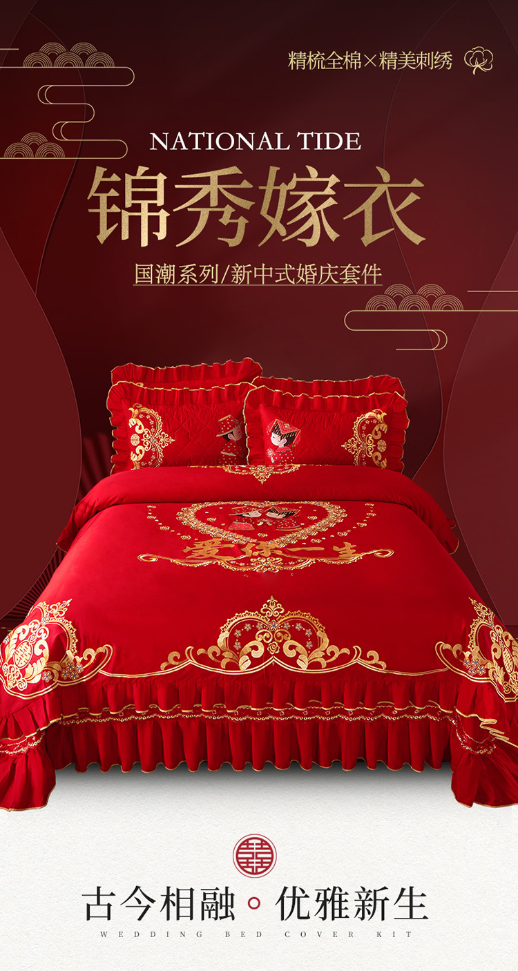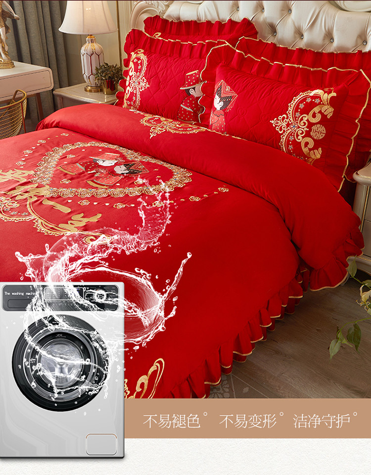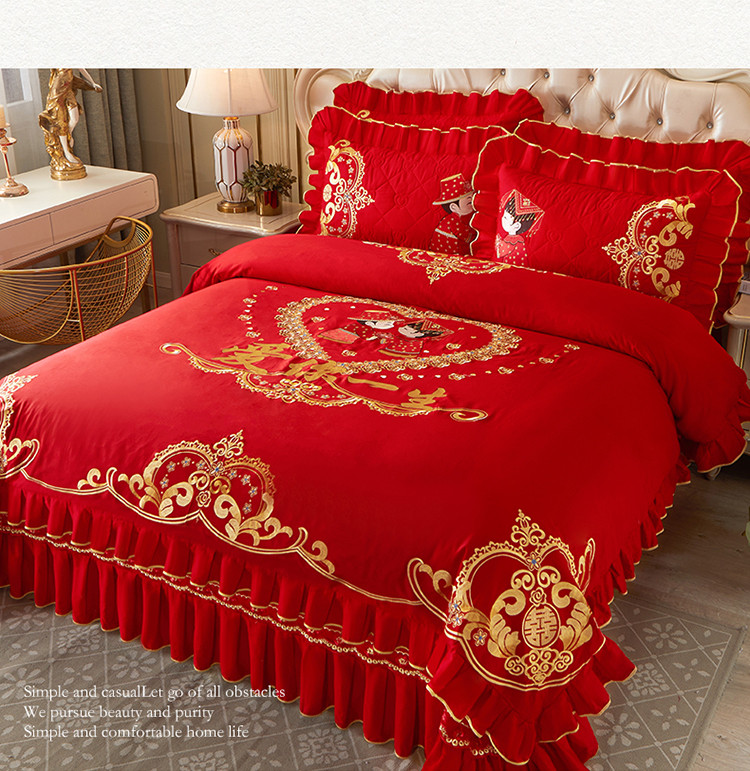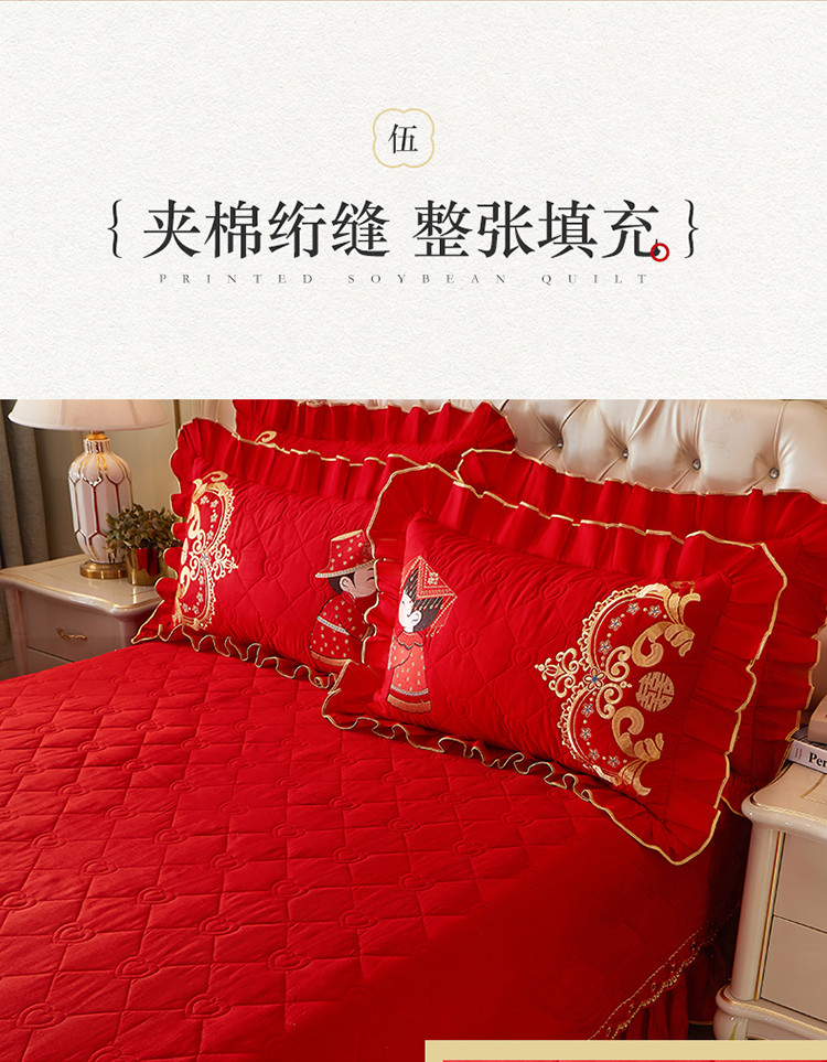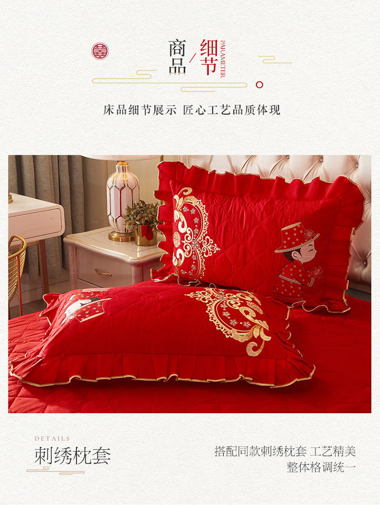 商品名称:宜凡 2022新款绣花婚庆全棉夹棉床盖款四件套 麒麟姻缘