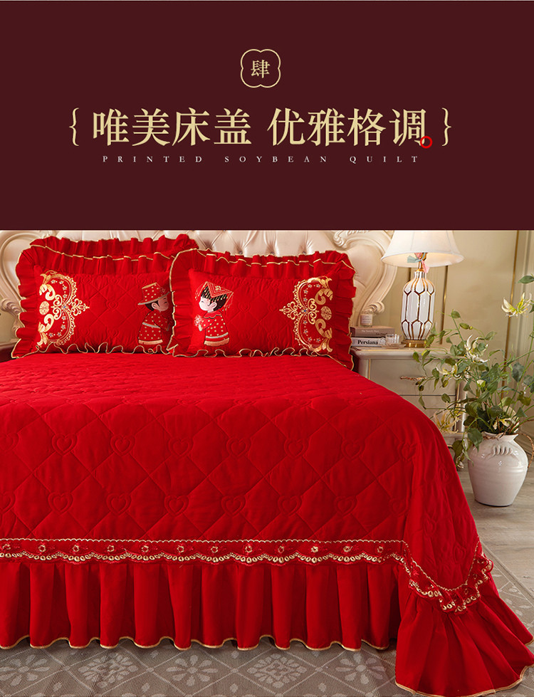 宜凡 2022新款绣花婚庆全棉夹棉床盖款四件套 麒麟姻缘