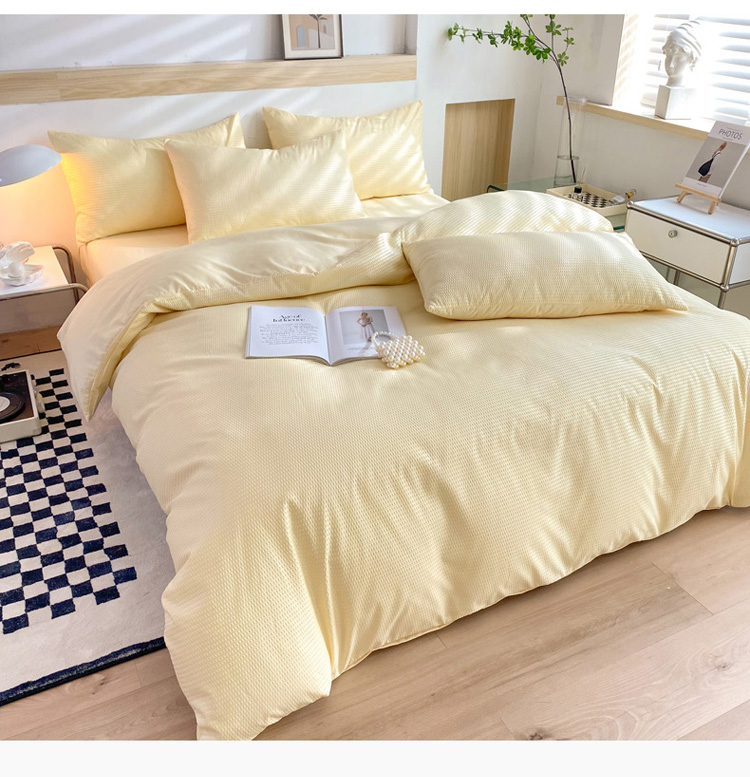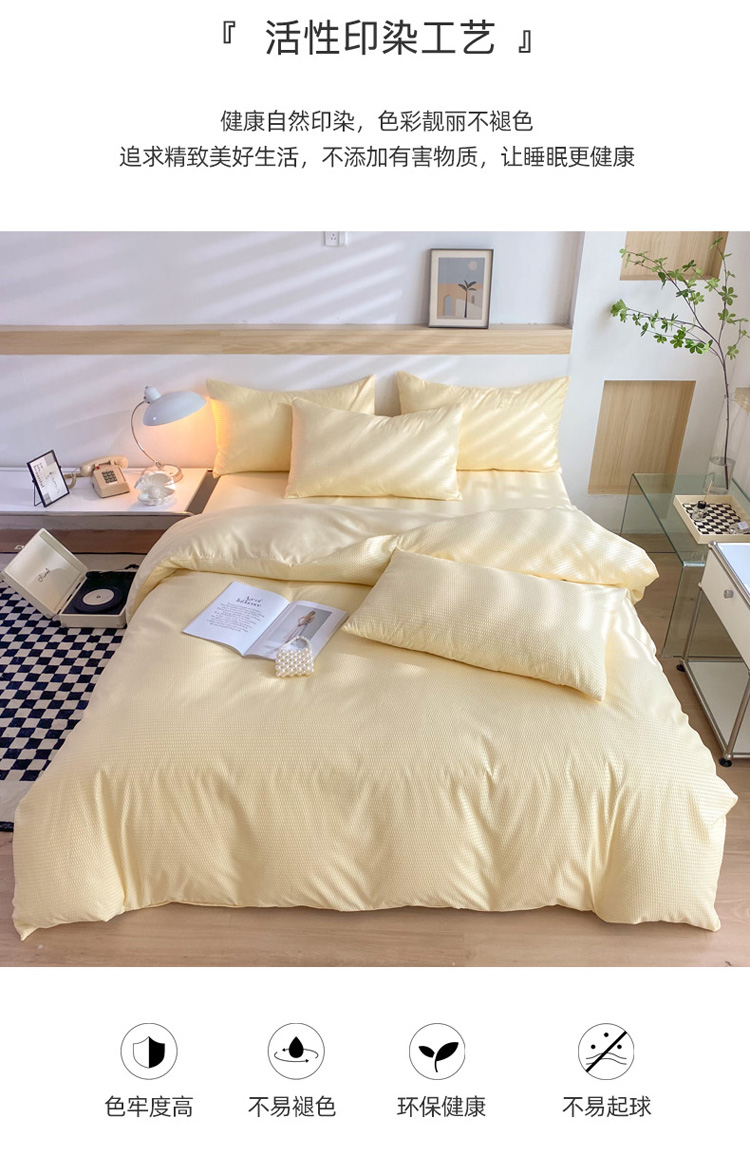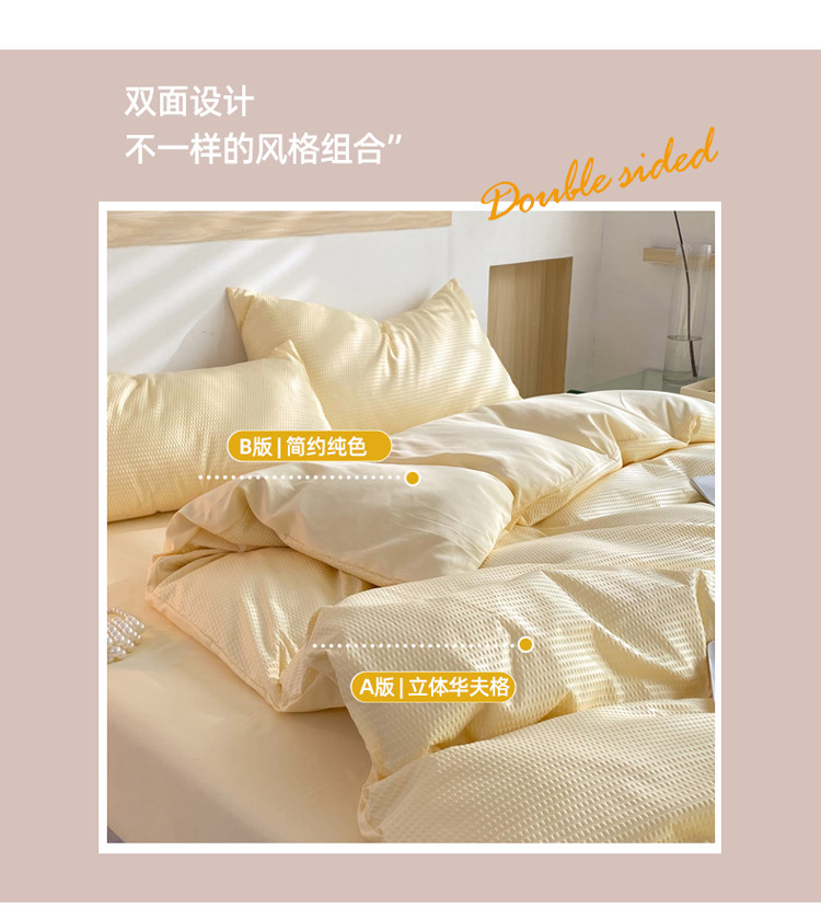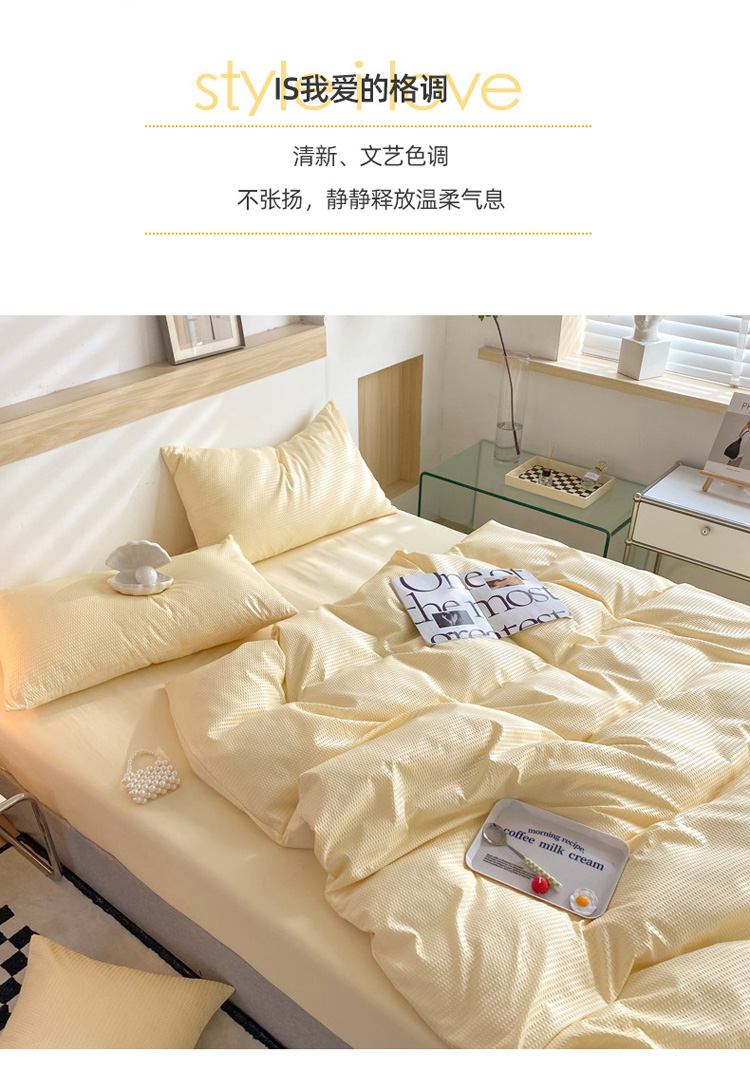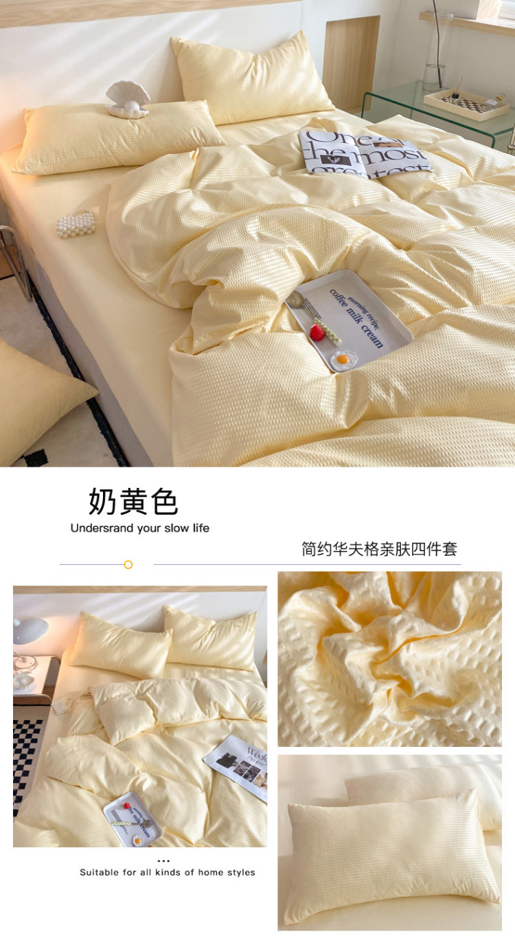 商品名称:慕澄家纺 2022新款华夫格简约款泡泡四件套 奶黄色