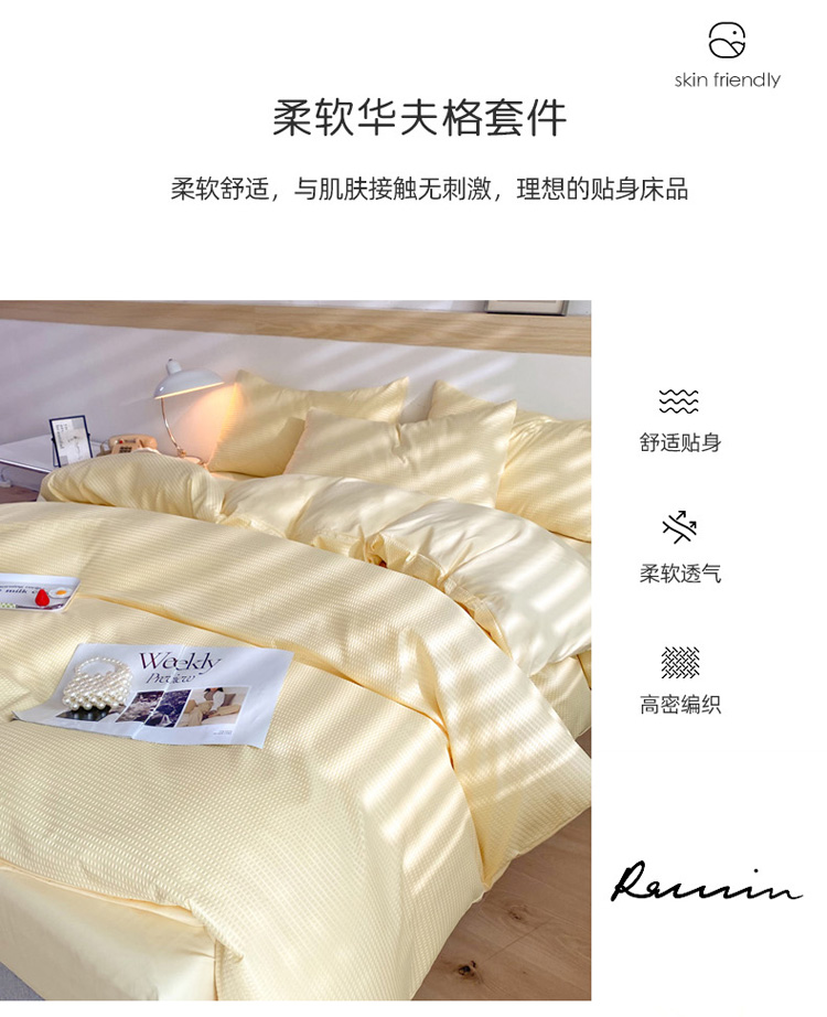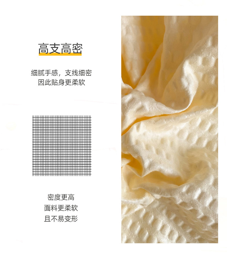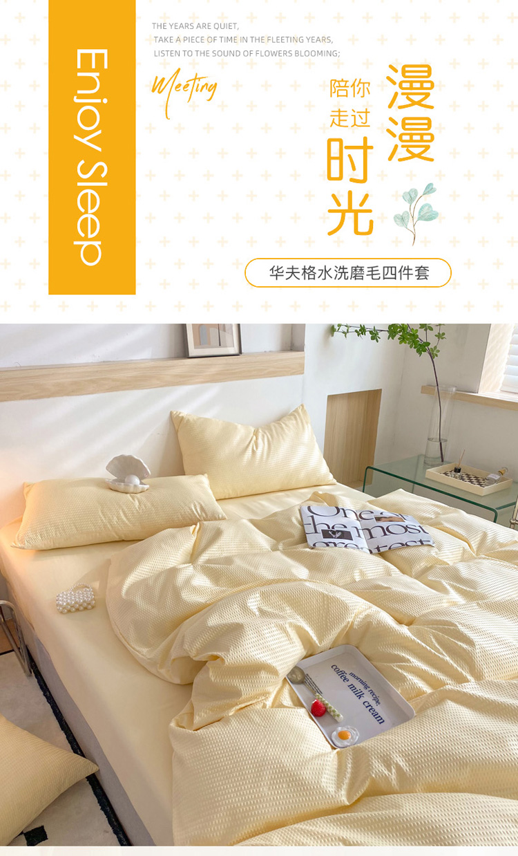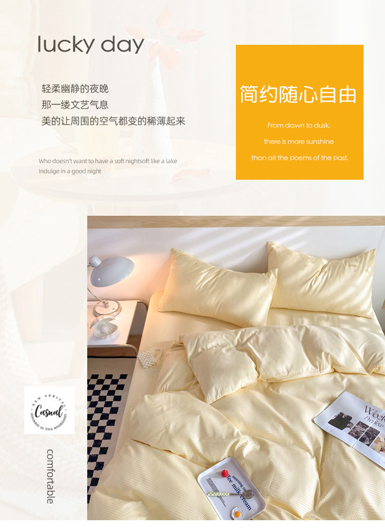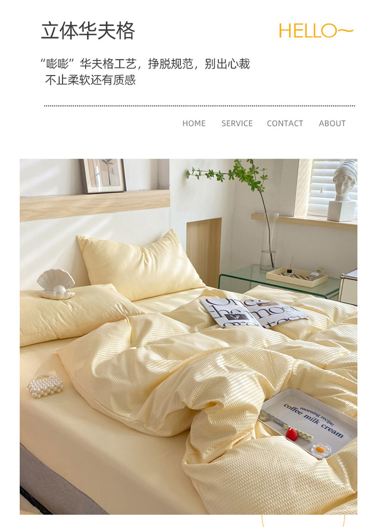 商品名称:慕澄家纺 2022新款华夫格简约款泡泡四件套 奶黄色