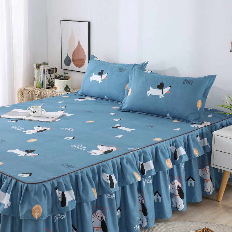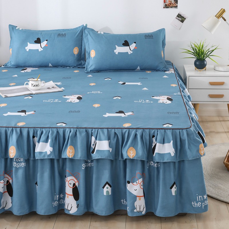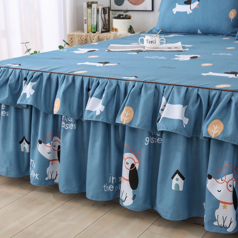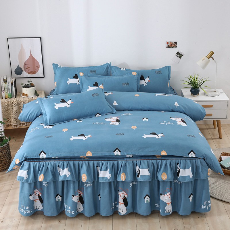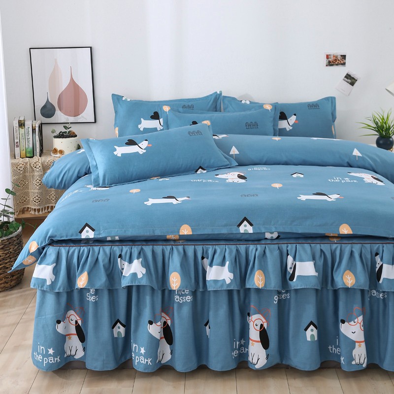 商品名称:代芙 2022新款加厚磨毛双边床裙四件套 狗狗世界