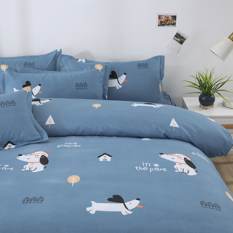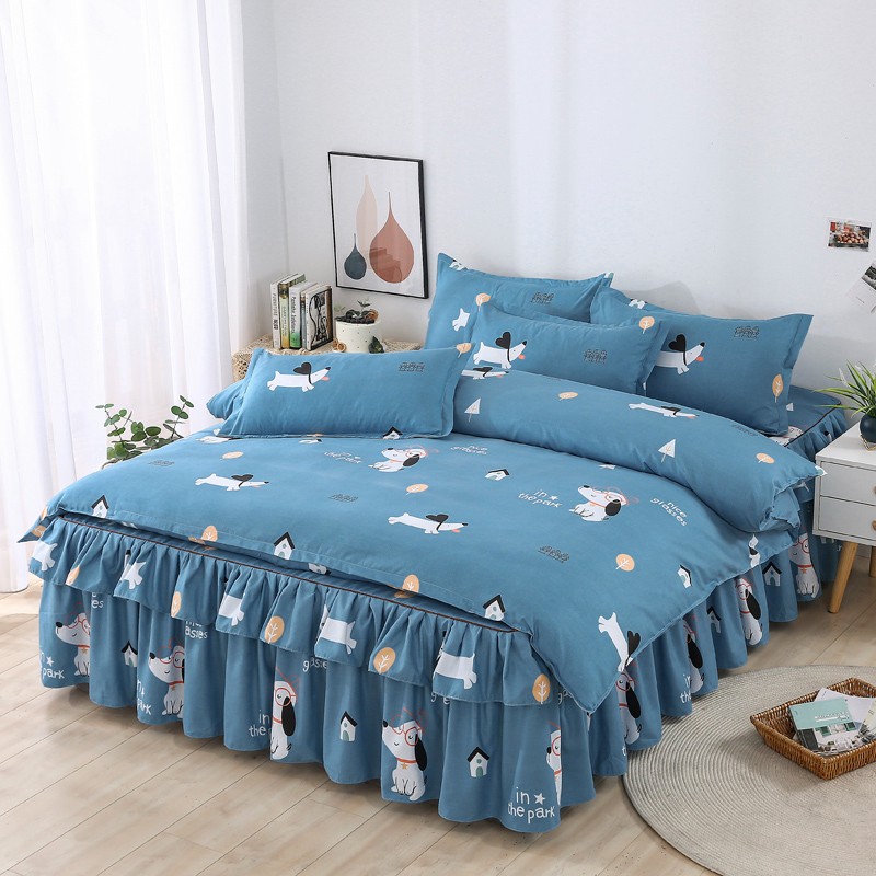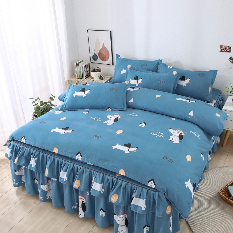 代芙 2022新款加厚磨毛双边床裙四件套 狗狗世界