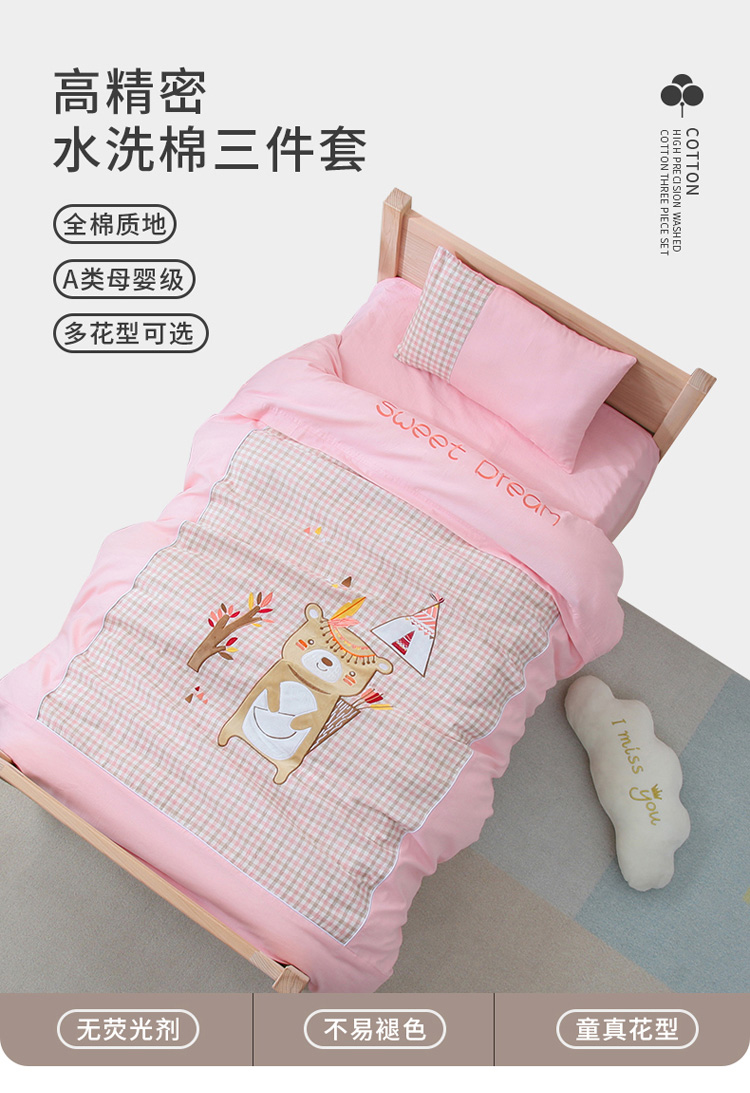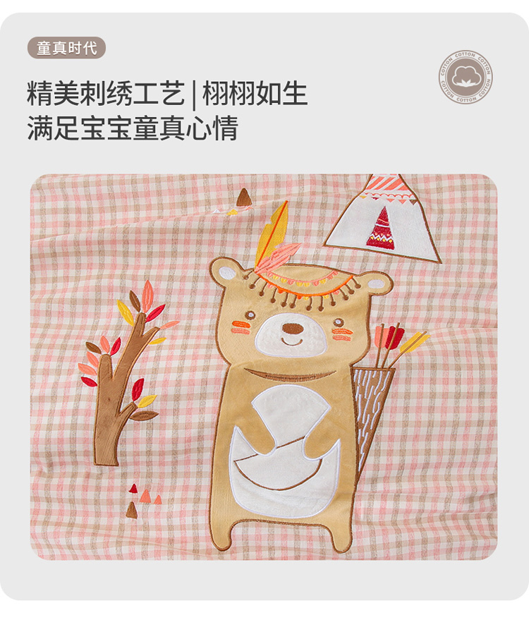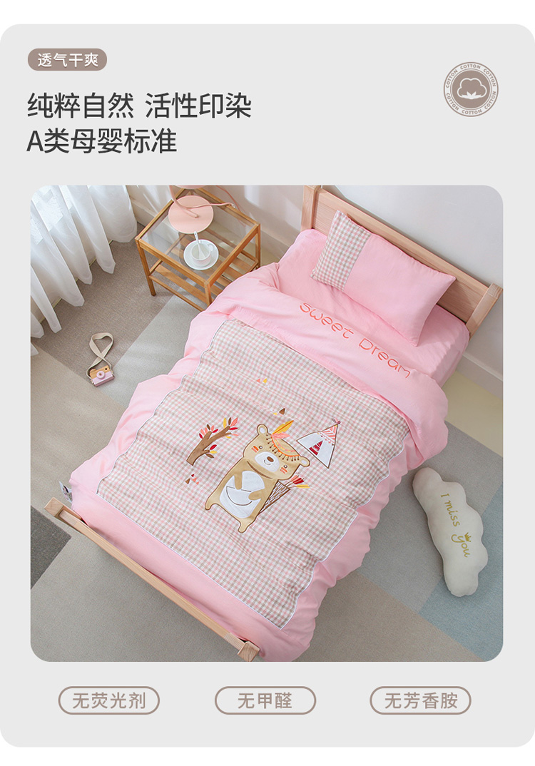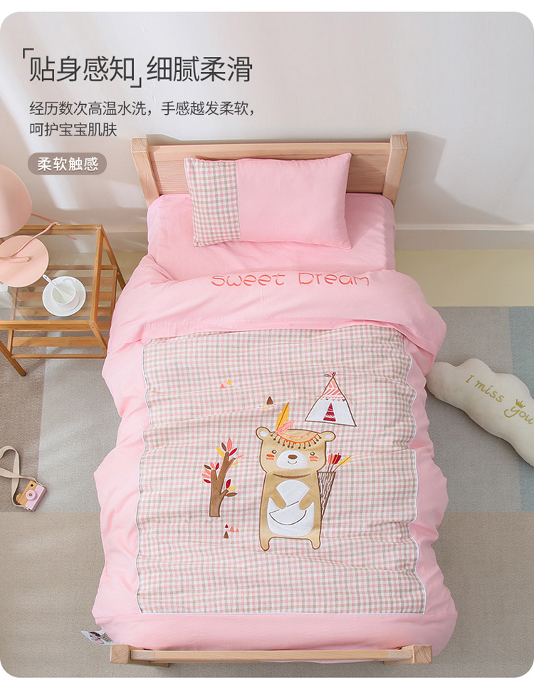 当前位置: 91家纺网 > 商品网购 > 婴童用品 > 婴童三件套 > 喜多兔兔兔和熊熊高精密纯棉色织水洗棉幼儿园三件套粉色印第安熊