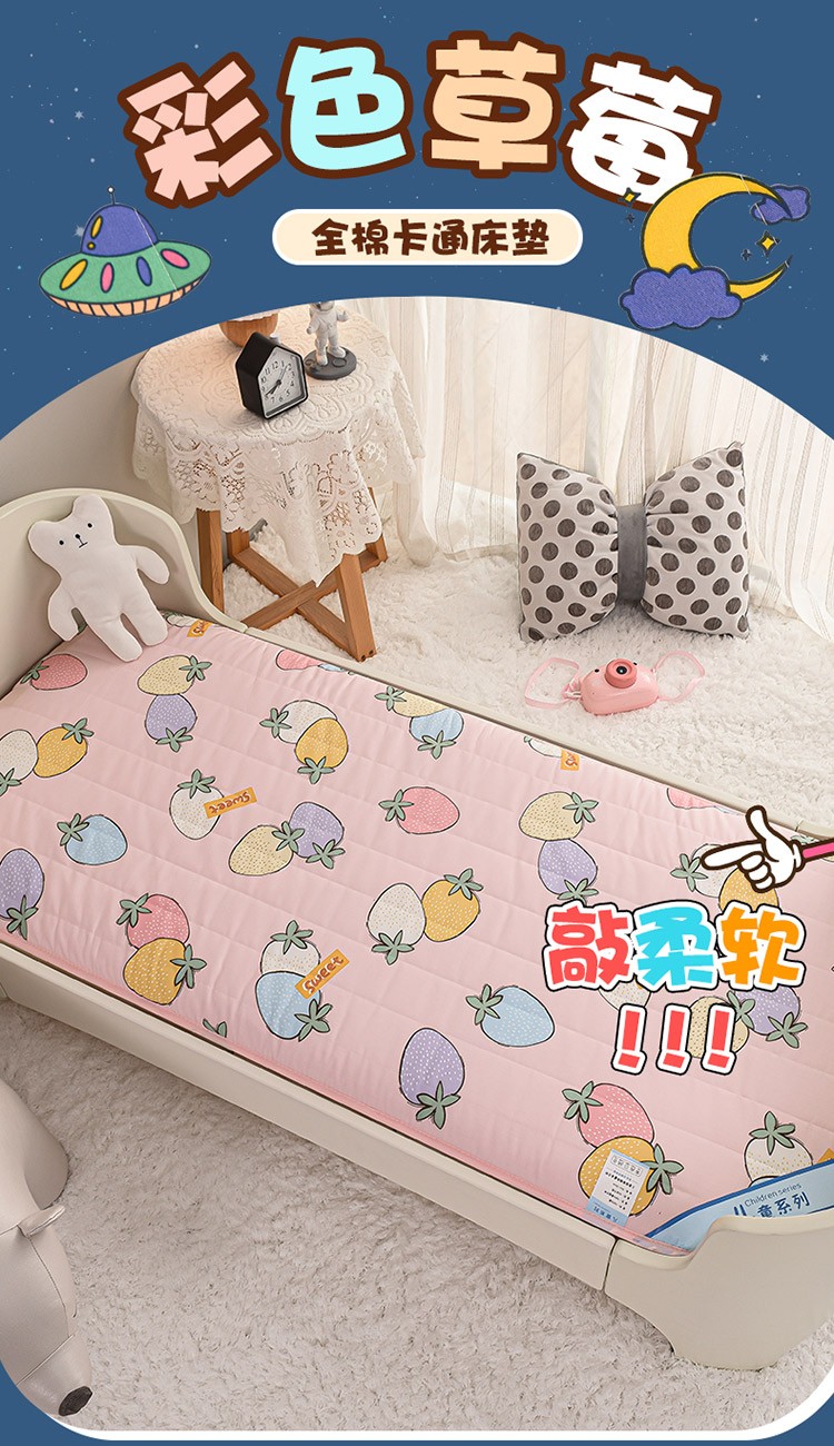 (总2)宝贝优选 2024新款全棉可拆洗床垫(三种芯类可选),彩色草莓,草莓牛牛,呆萌小熊,的士恐龙,动物乐园,小汽车,小象,宇宙探险
