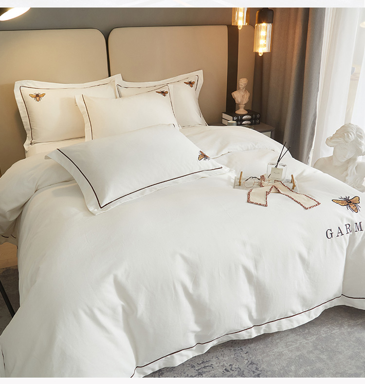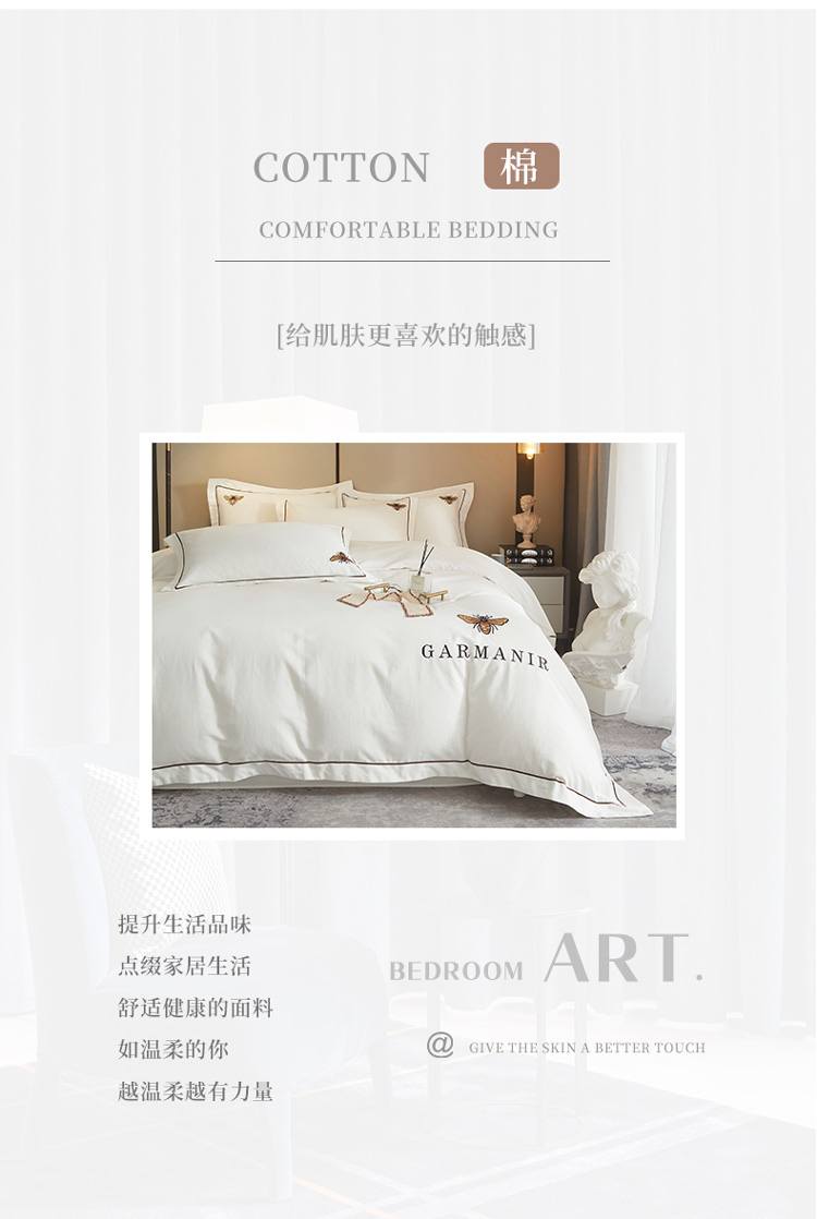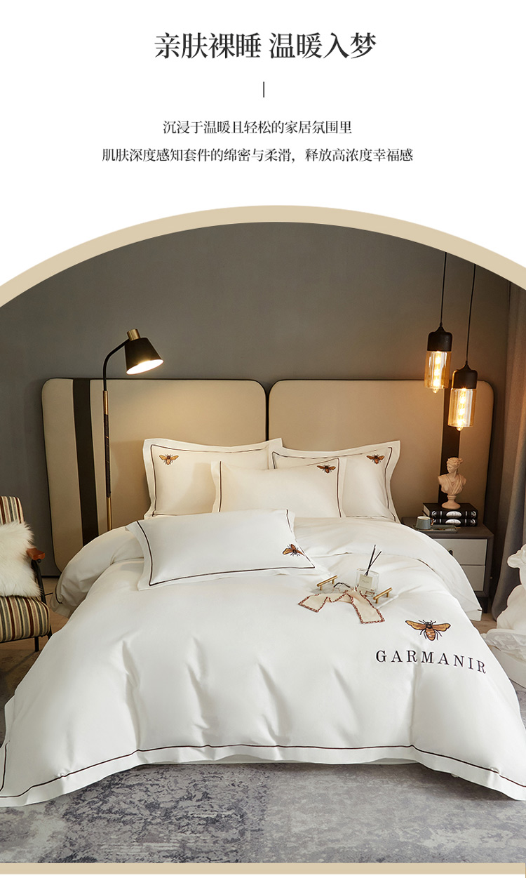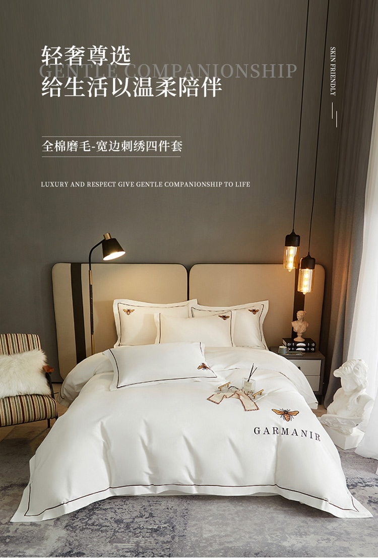 启航家居2025新款全棉磨毛宽边刺绣四件套英伦潮派系列英伦潮派-至臻白