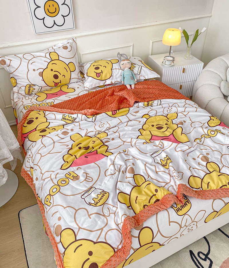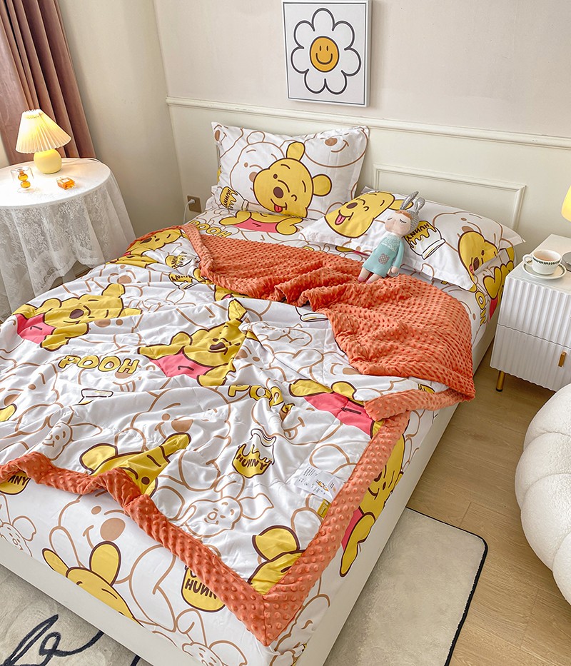 一米阳光 2022新款迪士尼豆豆绒夏被四件套 维尼熊