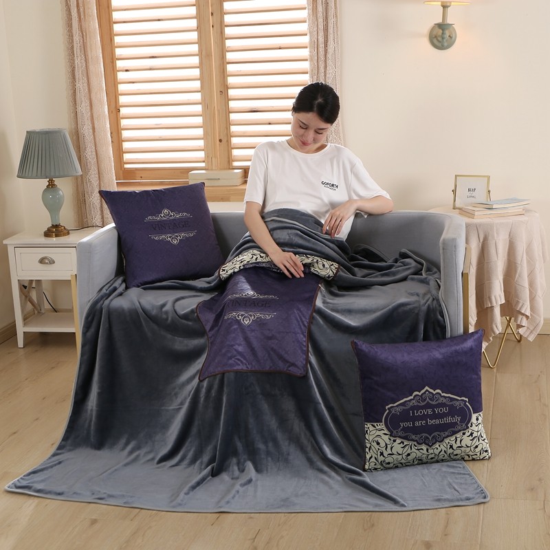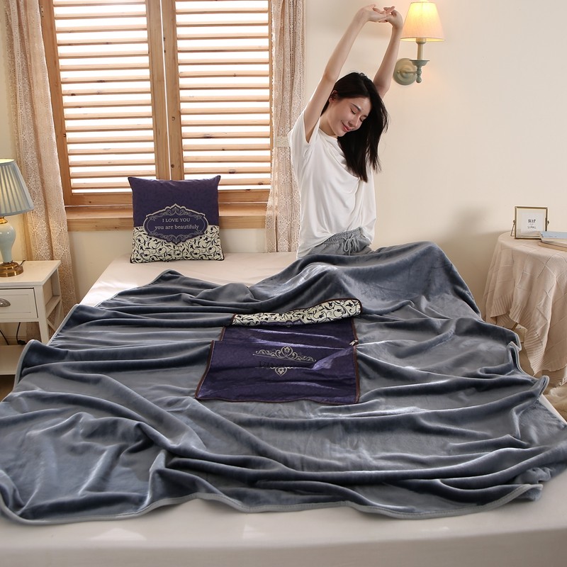 素玖抱枕被 2023新款外面水晶绒里面灰色法兰绒毛毯抱枕毯 奢华