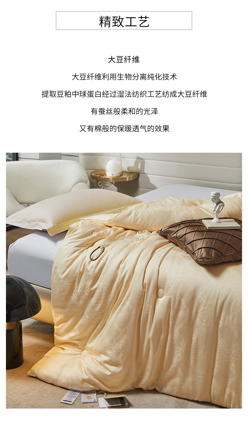 A类提花大豆纤维被子冬被木本59大豆纤维春秋被芯拉链子母被 59木本大豆被黄