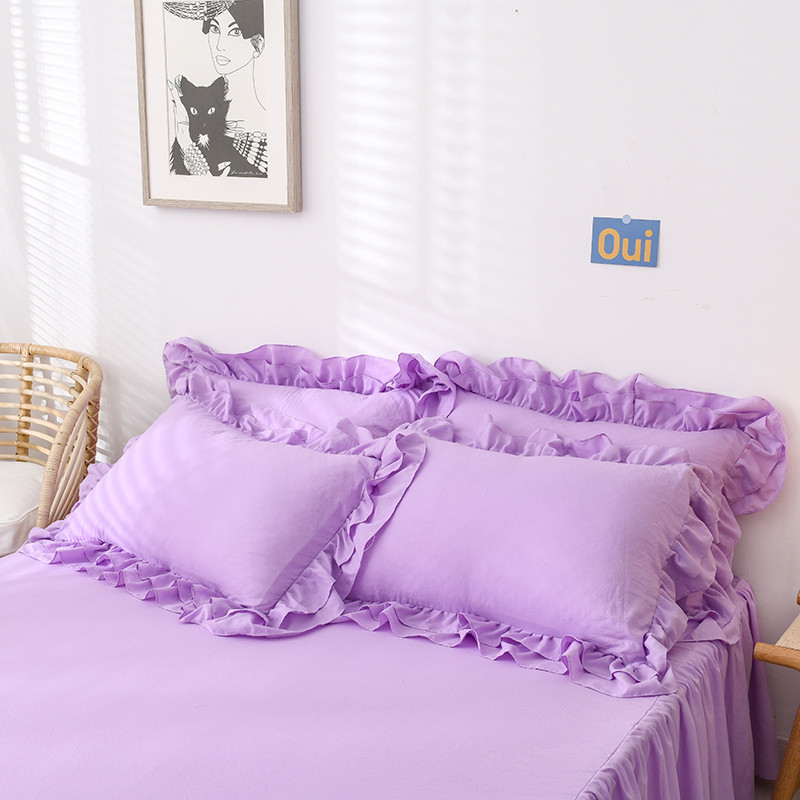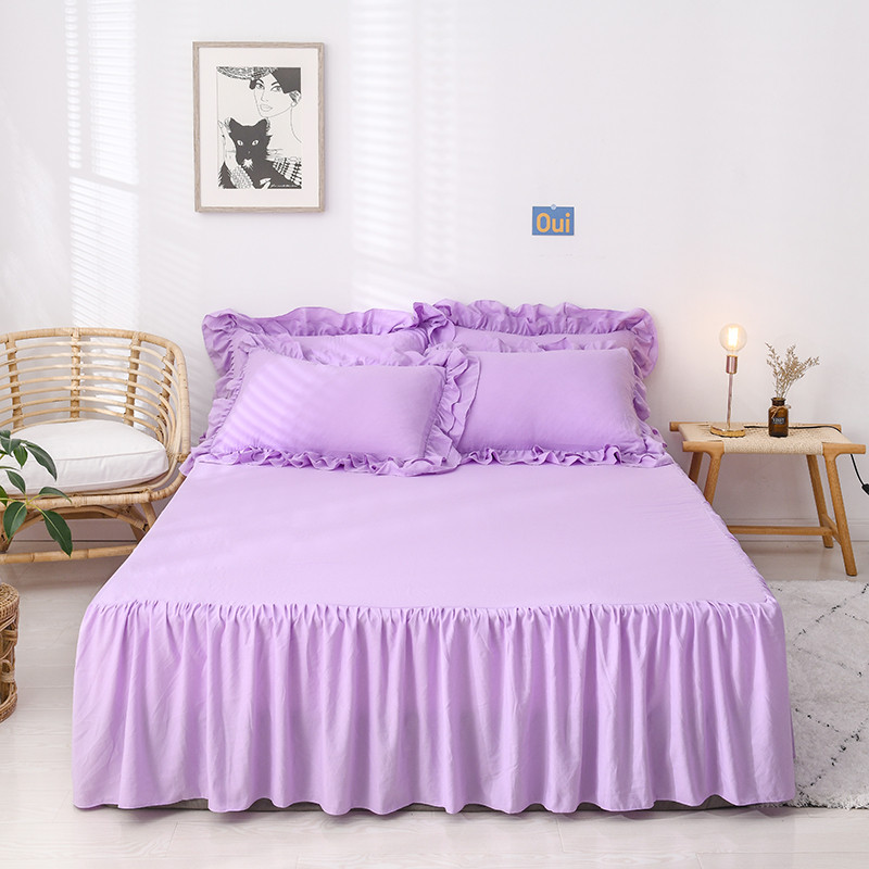 2023新款水洗棉磨毛韩式单层床裙 紫色