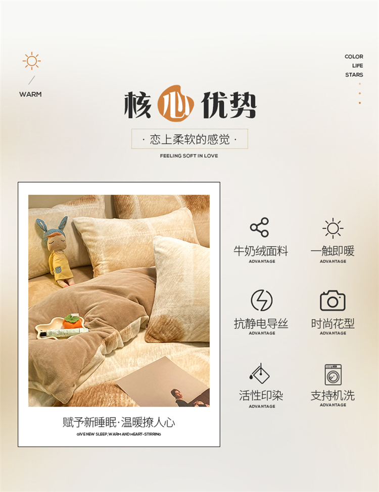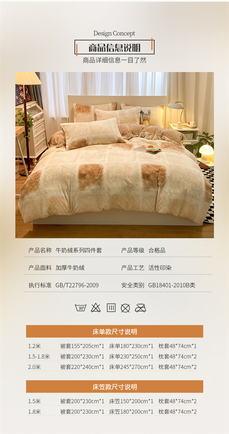桃子家居 2022新款ins轻奢简约北欧加厚牛奶绒系列四件套 巴尔曼