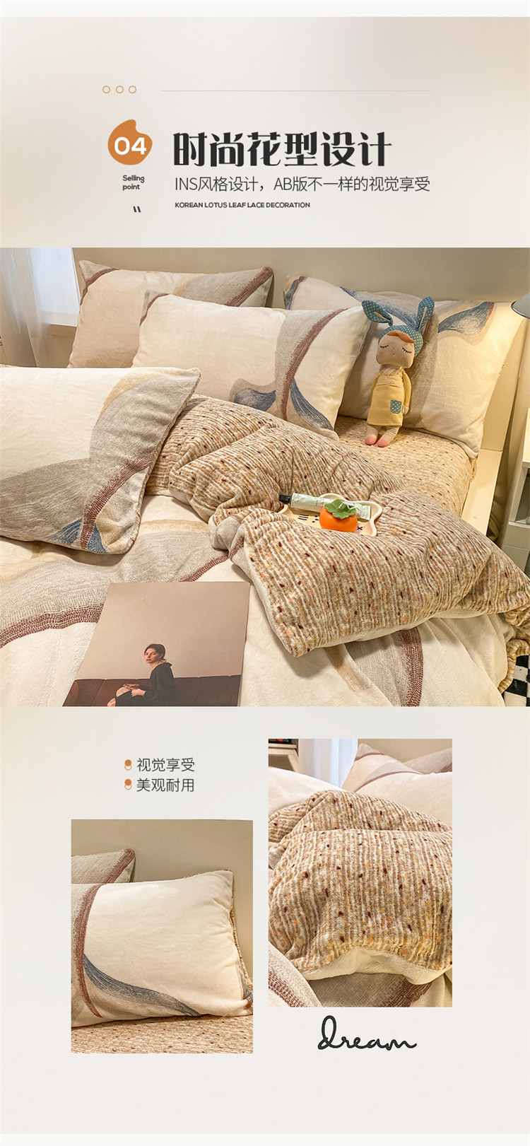 桃子家居 2022新款ins轻奢简约北欧加厚牛奶绒系列四件套 莫兰