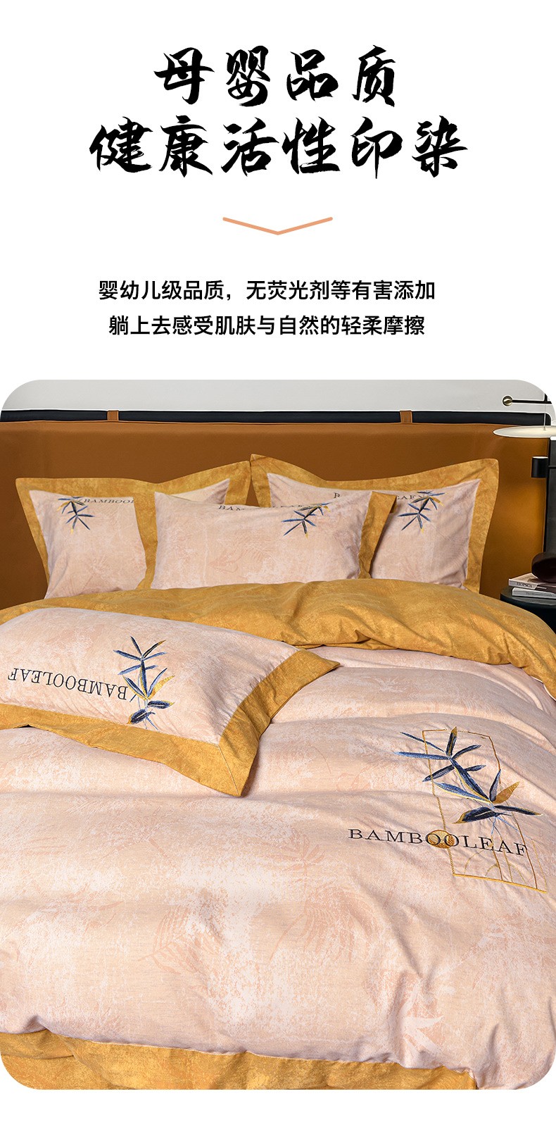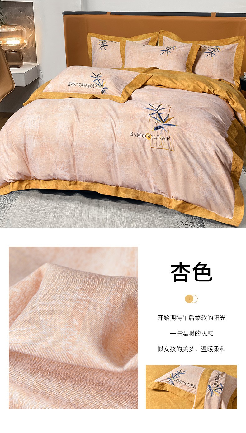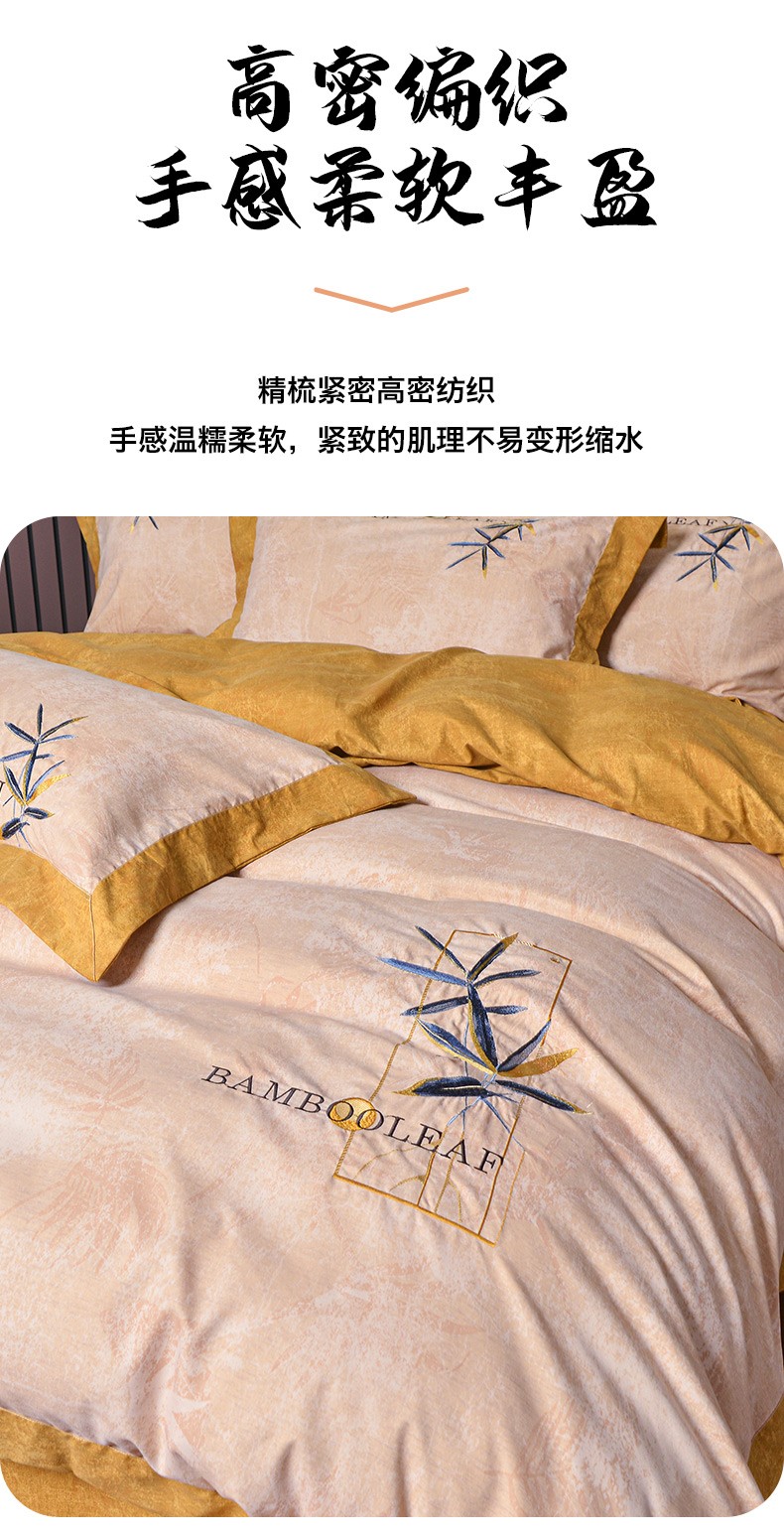 (总)梦柏家纺 2022新款亲肤雅棉绣花四件套,茶色,魔力灰,南瓜色,珊瑚绿,深海兰,杏色